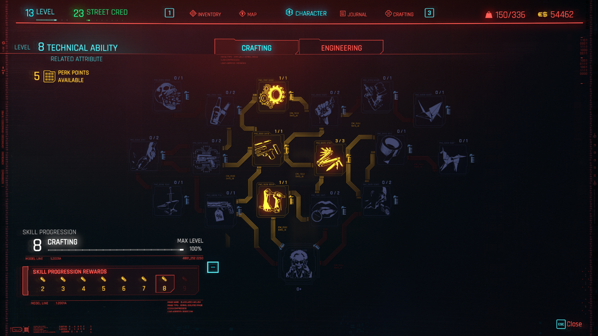 Reflexes probably has the least impact on contextual dialogue compared to every other stat. On top of that, the passive bonuses for Reflexes is limited mostly to passive evasion or minor crit chance increases. Even the perks found here are typically tied to specific weapon types. However, if you find yourself favoring pistols, revolvers, rifles, katanas or the like, you’ll find a lot of ways to improve those weapon types here. As for generally-useful perks, there’s not much to be found.