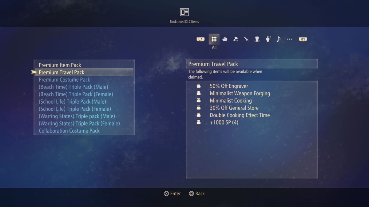 - Effect Description: Allows you to carry over the various Tales of Arise Outfits, costumes, haircuts, and cosmetic accessories to a New Game+ after clearing the game.