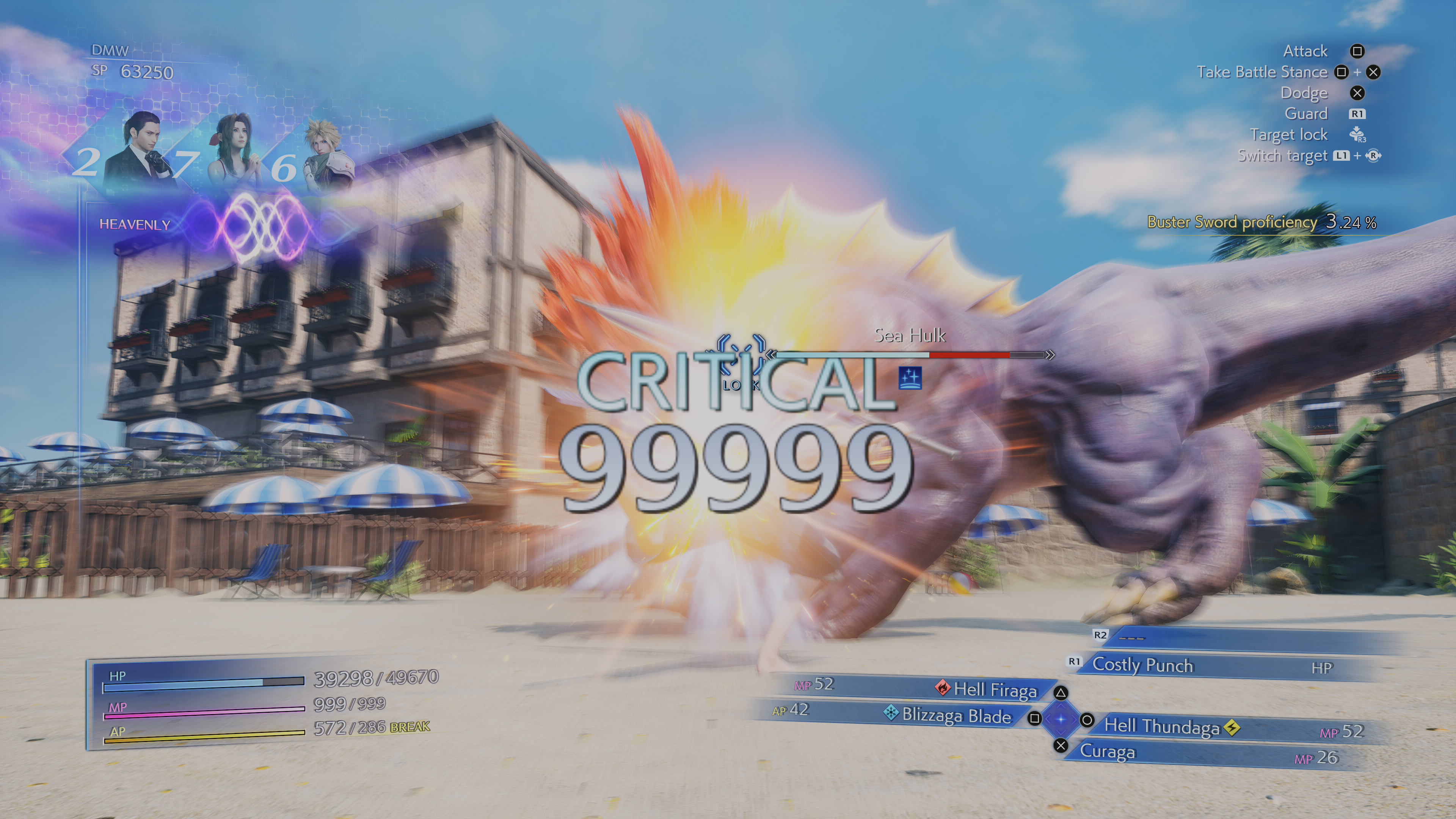 - Make use of that Buster Sword. In Crisis Core Reunion only, once Zack gets the Buster Sword you unlock 'Buster Sword Proficiency', including a Battle Stance that lets Zack block incoming attacks and then counter-attack. This can be great against the Sea Hulk.