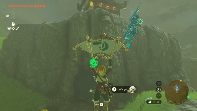 Directly beneath the tower on the next level immediately down (paraglide down and run a loop of the grassy area below), you’ll find a hole leading to a small explorable cave. Inside, there’s a Bubbulfrog creature you can get a Bubbul Gem from, a bunch of ore to mine, some enemies - and yes, some mushrooms. But none of that is what we want.