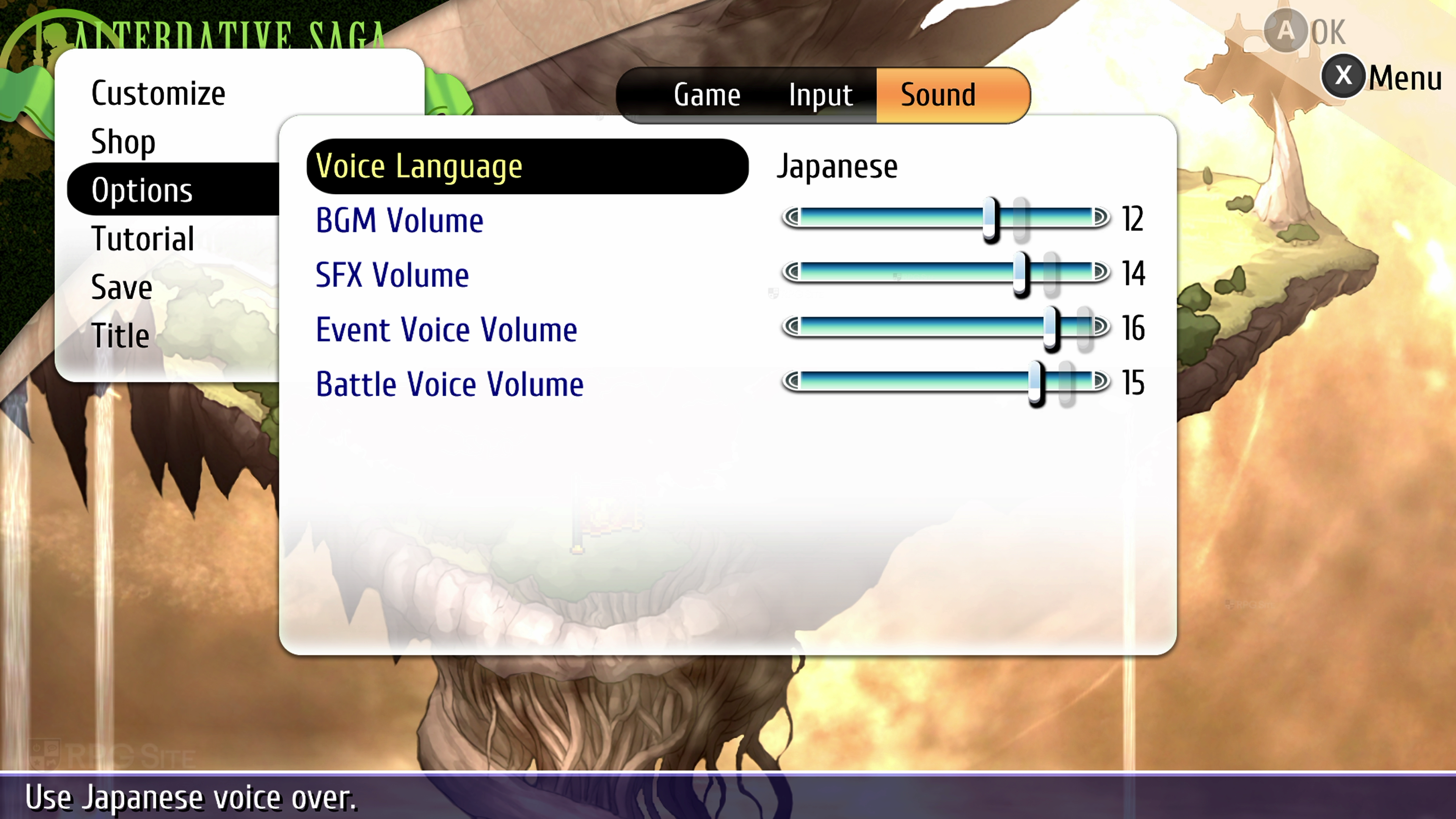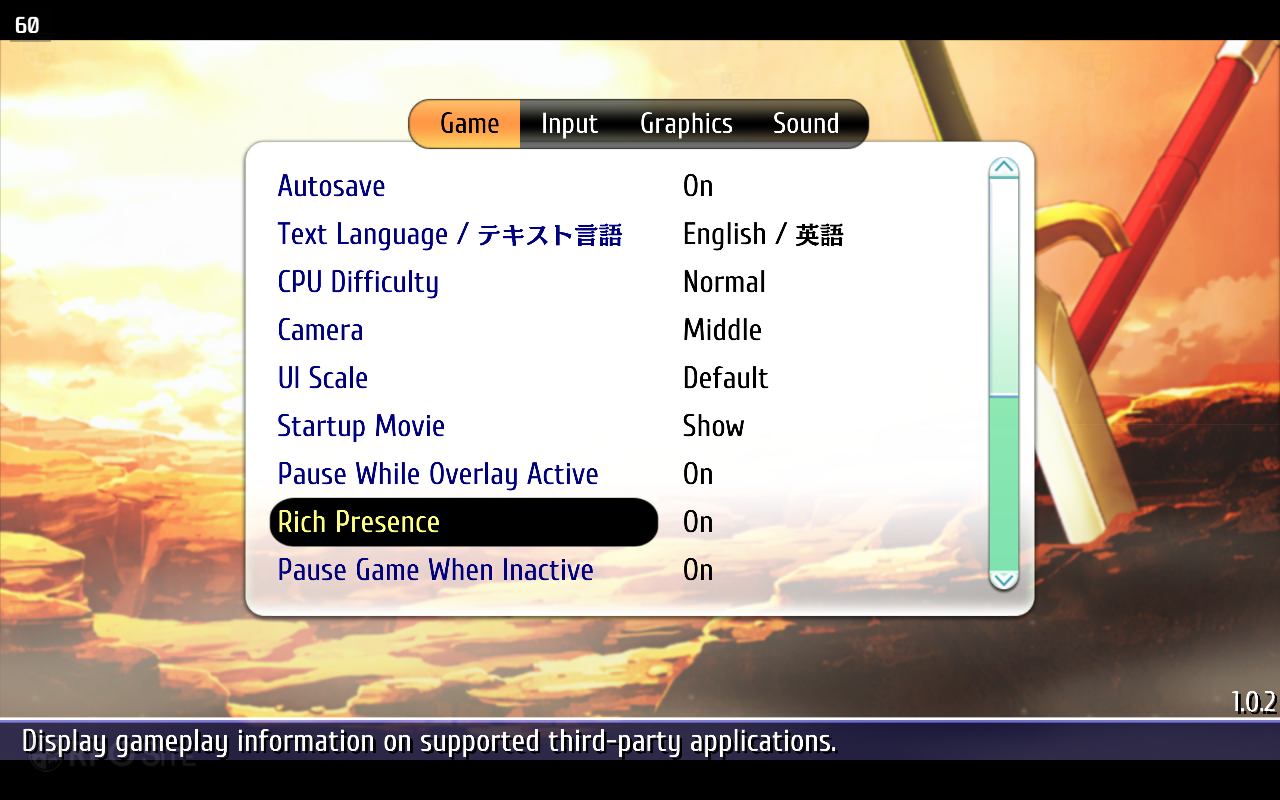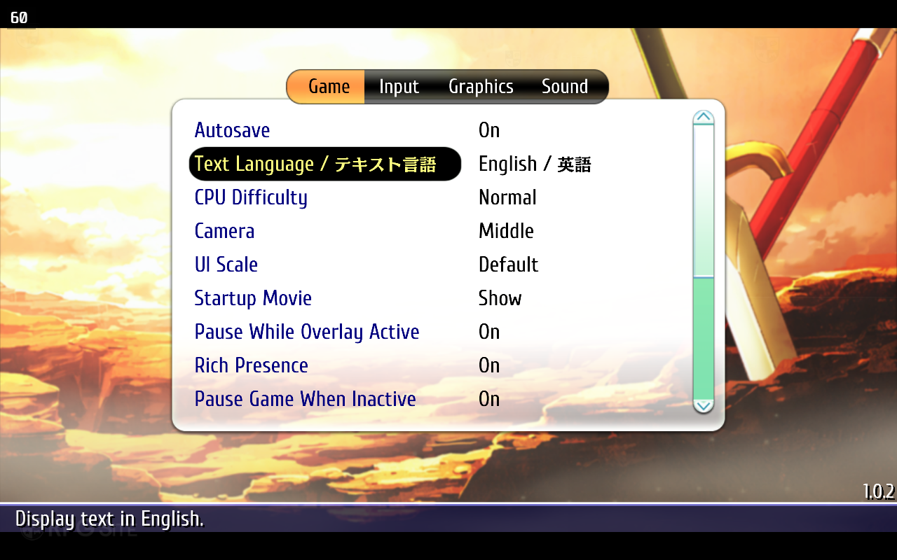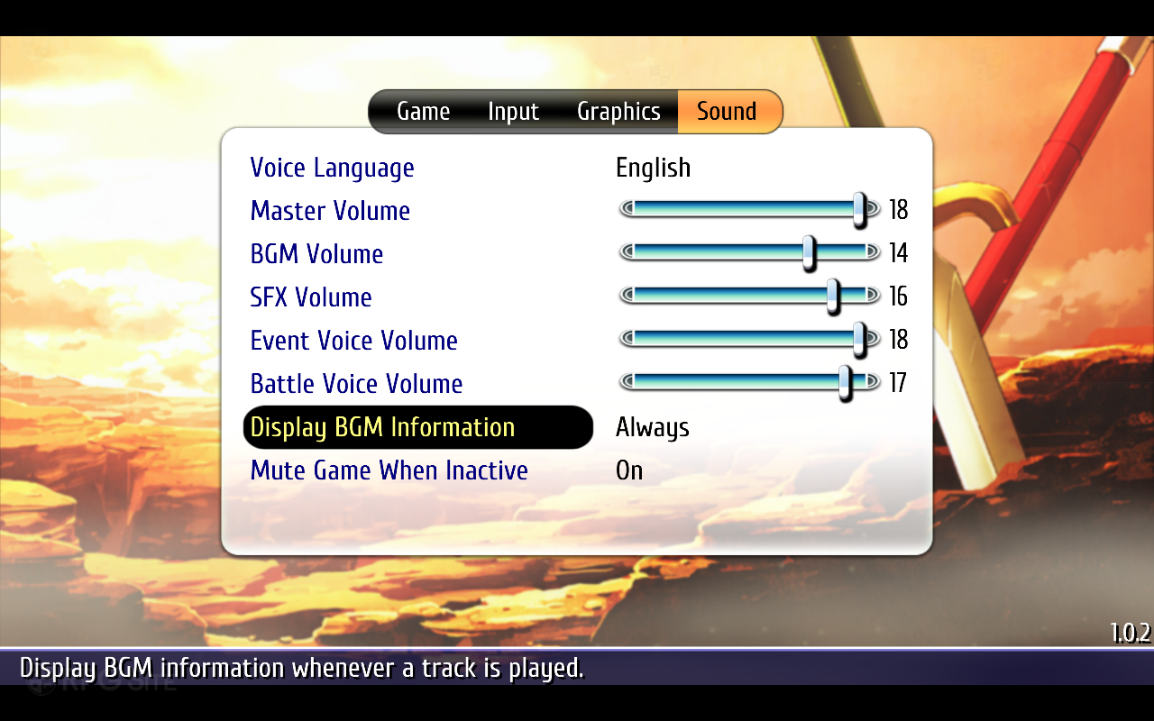 Ys vs. Trails in the Sky: Alternative Saga on PC lets you adjust not only the voice language (English or Japanese) like on consoles, but also the text language from the game options. Beyond that, you can also enable Rich Presence support (for third party applications to display gameplay information), toggle off the startup movies to save time while loading, choose button icons (auto, keyboard & mouse, PlayStation, Xbox, Nintendo Switch, Steam Deck, and even horizontal Joy-Cons), remap buttons, and adjust various graphics options. The sound options let you toggle on the "Show BGM information" that when a track is played for the first time or always when a track changes. You can also disable this.