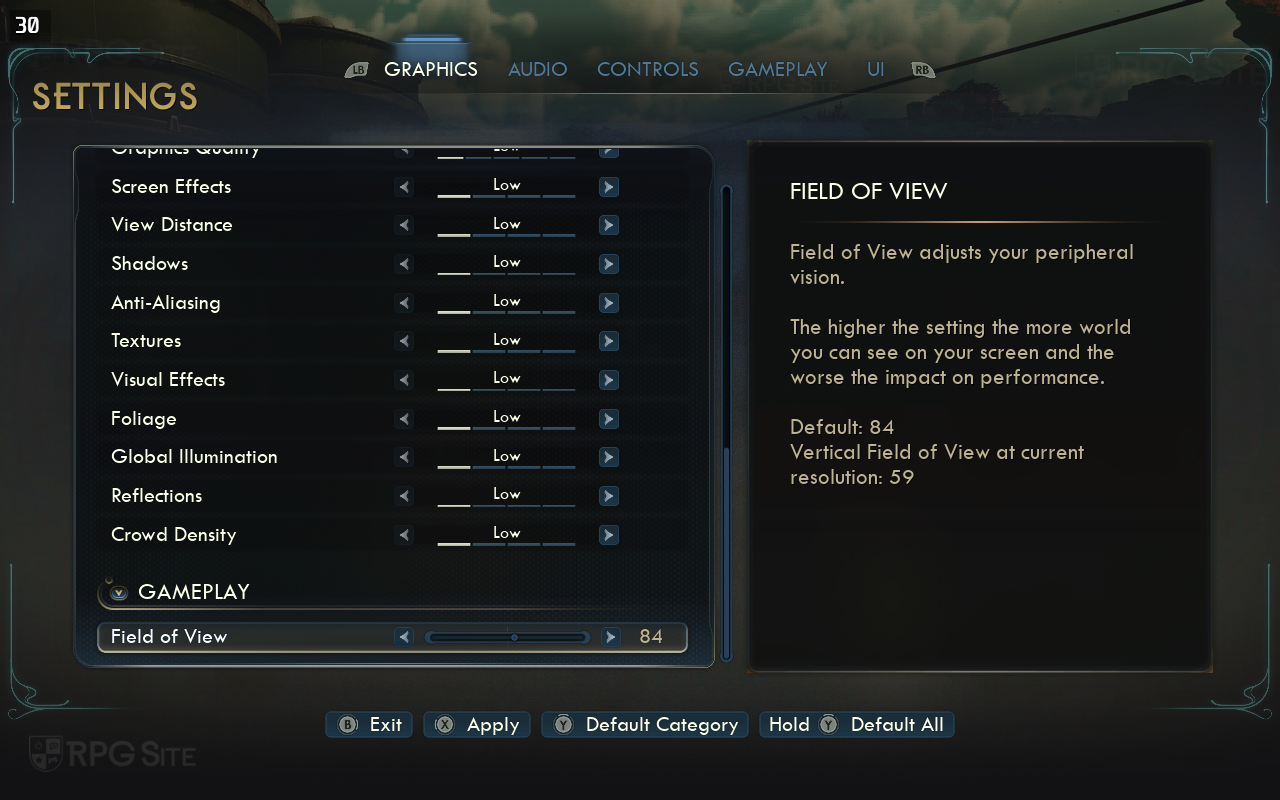 The Outer Worlds 2's individual graphics settings come under the Quality section of the main Graphics settings menu. This section lets you automatically set the game's quality options after analyzing your hardware to detect the best settings or manually change each one. The options you can adjust are screen effects, view distance, shadows, anti-aliasing, textures, visual effects, foliage, global illumination, reflections, and crowd density. You can change the levels across low, medium, high, and very high. You can adjust the field of view at the bottom of this menu. I also want to note that The Outer Worlds 2 has great text and UI options in addition to two different third-person camera options to play with. The text and UI options are very welcome for handhelds and when playing on TV.