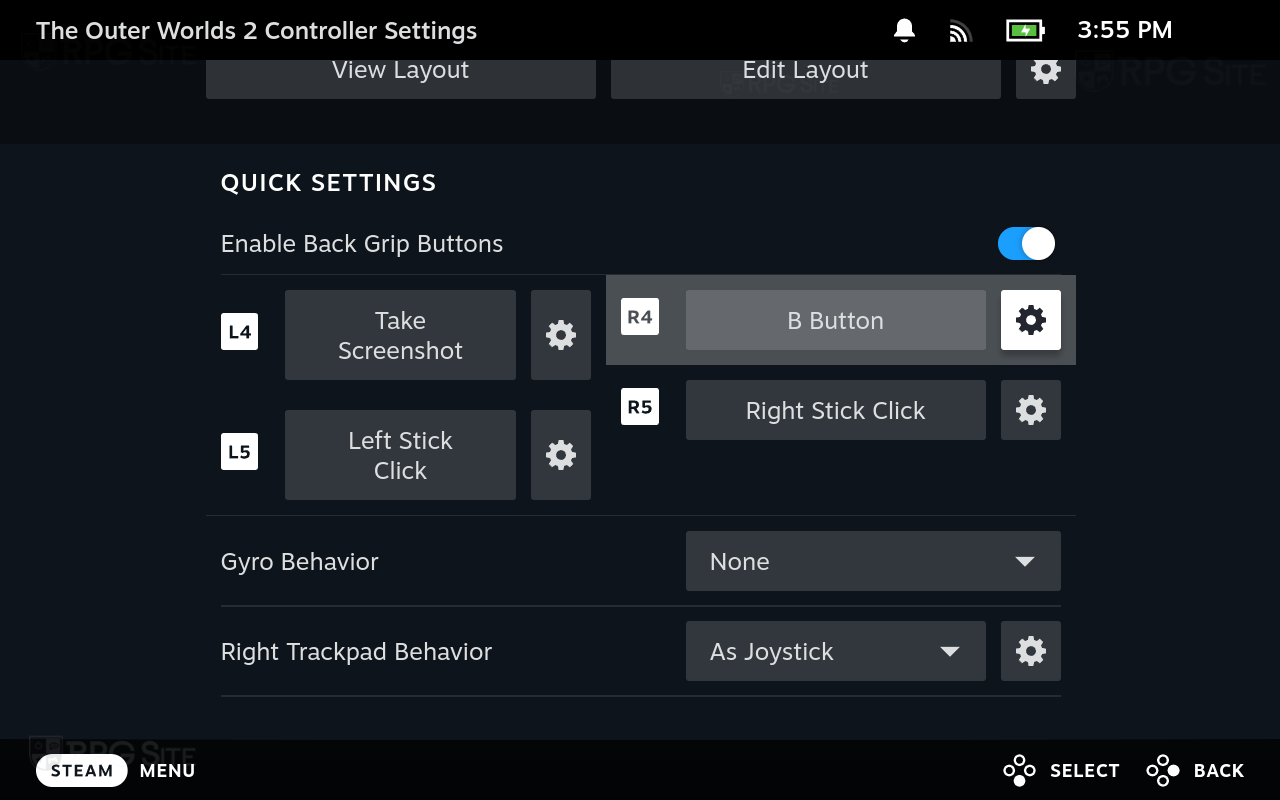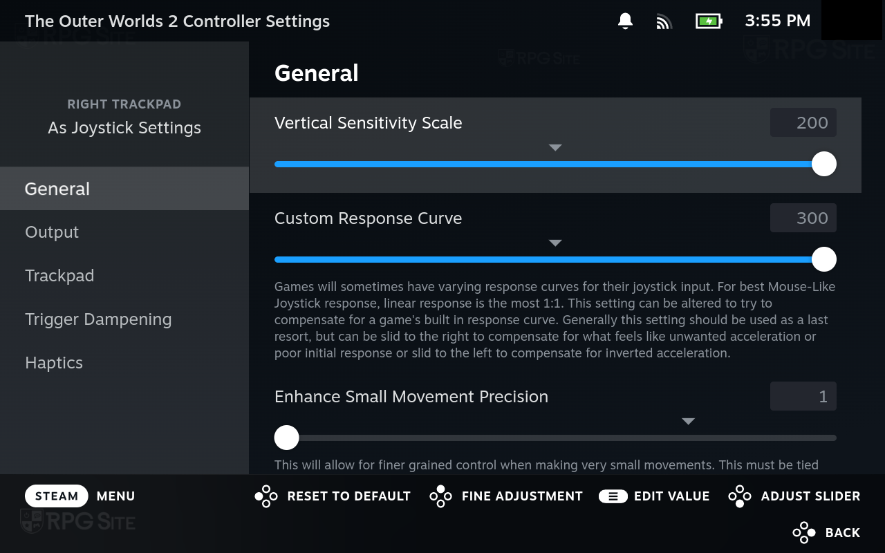 Beyond the graphics and display options, I recommend enabling the Steam Deck's back buttons for Left Stick Click and Right Stick Click since you will be using those often. The final recommendation is to tweak the sensitivity of the right trackpad as Joystick so you can use it for precision aiming during combat. This helps a lot and while having the trackpad set to mouse would've been ideal, I couldn't get it work as well as tweaking the sensitivity for the trackpad used as the right Joystick. With these settings, you will have a decent-looking and playing experience with a 30fps target, but will see dips below 30fps sometimes in the open world. I noticed XeSS and FSR couldn't deal with the foliage as well as TSR when using heavier upscaling. I would recommend using TSR over those upscaling options on Steam Deck at least.