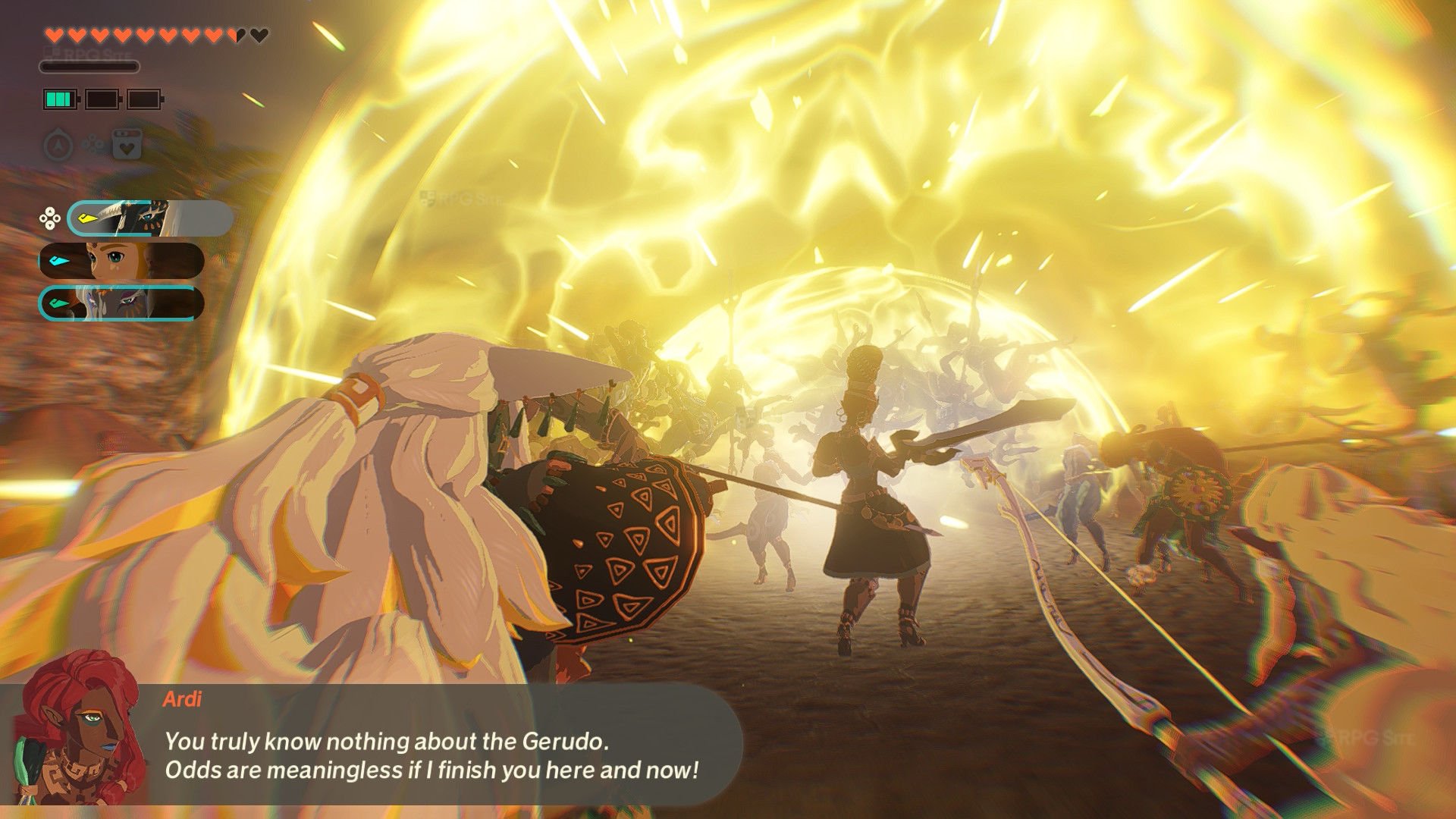 While I'm happy with the performance so far, some aspects of the visuals can leave a lot to be desired. When playing on my 1440p monitor, it lacks proper anti-aliasing and texture filtering. This is very noticeable on the ground and in foliage during movement. I got used to it, but I was hoping to see Koei Tecmo's first Switch 2-exclusive be a bit better technically. The good news is the character models look great and the particle effects really pop on the screen. Usually, Warriors game screenshots always feature over-the-top effects and combat. Hyrule Warriors: Age of Imprisonment surprised me by actually delivering what it showcased in promotional material during actual gameplay with great particle effects.