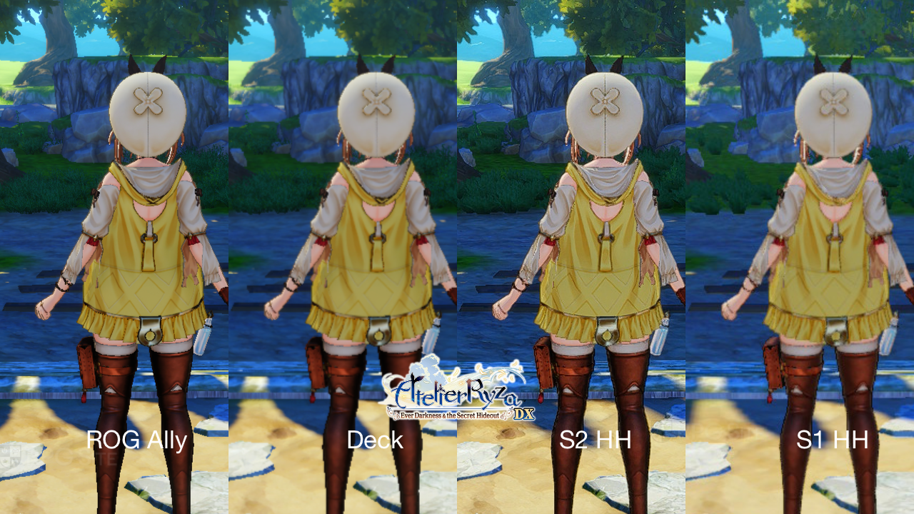 Atelier Ryza DX Switch 2, Switch, Steam Deck, and ROG Ally handheld visuals compared