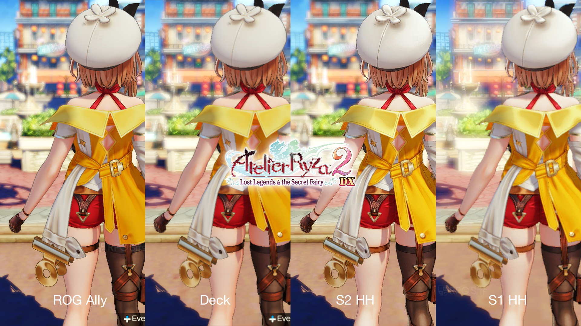 Atelier Ryza 2 DX Switch 2, Switch, Steam Deck, and ROG Ally handheld visuals compared