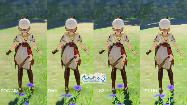 Atelier Ryza 3 DX Switch 2, Switch, Steam Deck, and ROG Ally handheld visuals compared