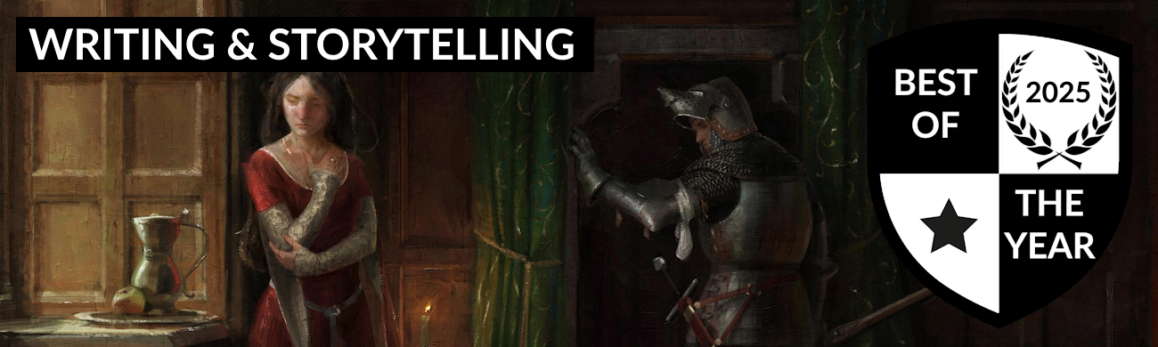 Our category awards have slowly shifted over the years. The general idea is that while a game may not rank highly amongst our RPG of the Year listing, it might deserve mention for one specific thing that it does better than anything else. Additionally, by discussing broad excellence in Art, Design, Writing, and so on, it is a good way to talk about several games that often end up placing very highly in the main list as well. If during the category discussion we find that a game has both great design and great writing, it probably is going to be a strong contender for our Top Five list.