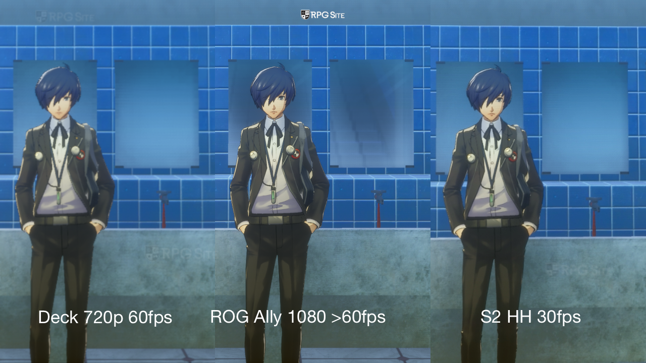 When looking at PC handhelds, Persona 3 Reload shines on ROG Ally with its 1080p output and 60fps (or higher) frame rate without trouble. The Steam Deck version runs at 720p and delivers a solid 60fps experience as well, albeit with reflections turned off. Reflections on PC handhelds can cause issues in parts of Tartarus, but they aren't as big of a problem on ROG Ally.