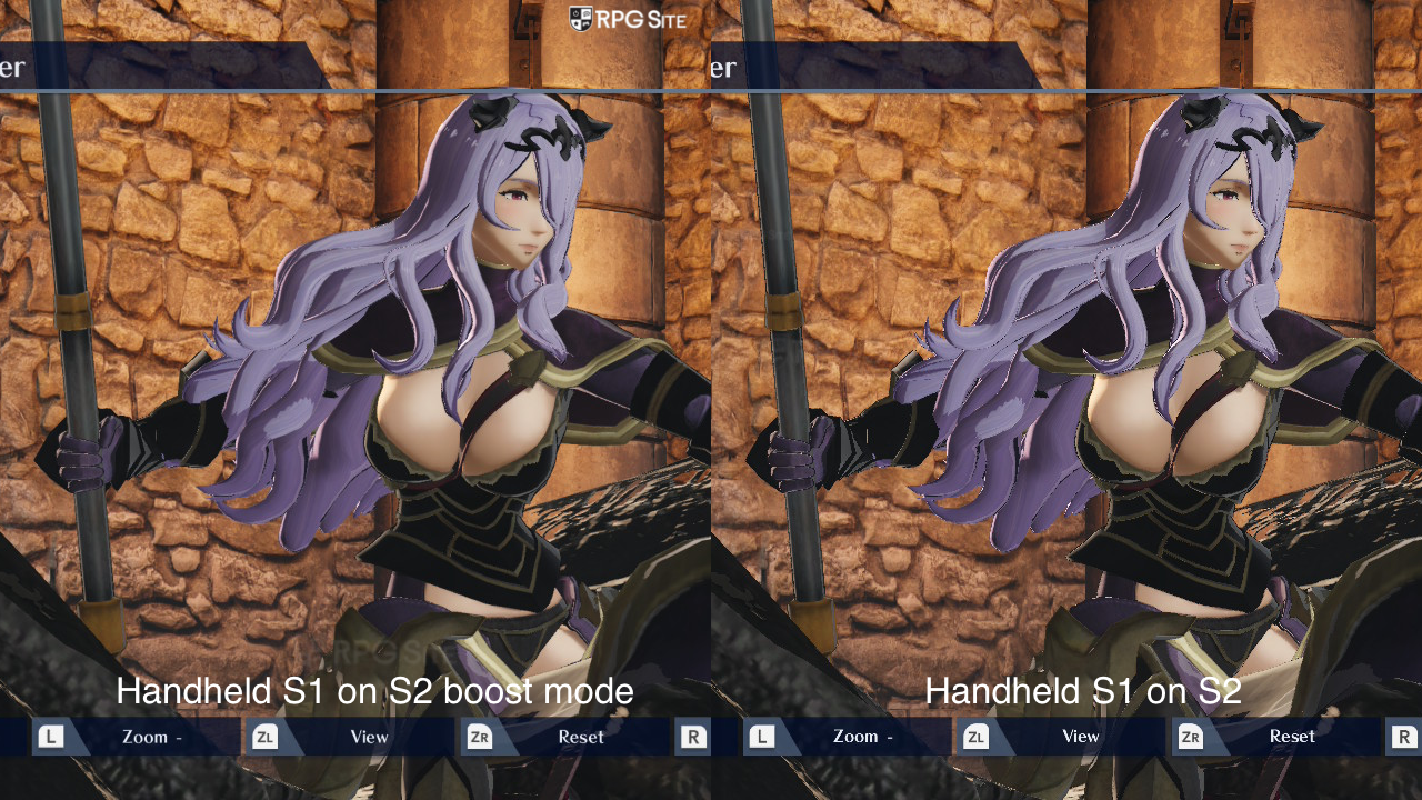 Fire Emblem Warriors: Three Hopes was a subnative resolution release both docked and handheld on the original Switch. It also ran at an uncapped frame rate. With Switch 2 backward compatibility, it was a nice 60fps experience both docked and handheld, but the image quality handheld wasn't great. With boost mode, it looks crisper handheld with 1080p UI, but I noticed some regular dips early on while testing in a few locations. I will revisit this over the coming days and play more to see how it holds up performance wise. The lack of good anti-aliasing is still very noticeable, but the resolution bump is definitely welcome using boost mode. There are also other changes like texture filtering and shadows with some of it being visible below: