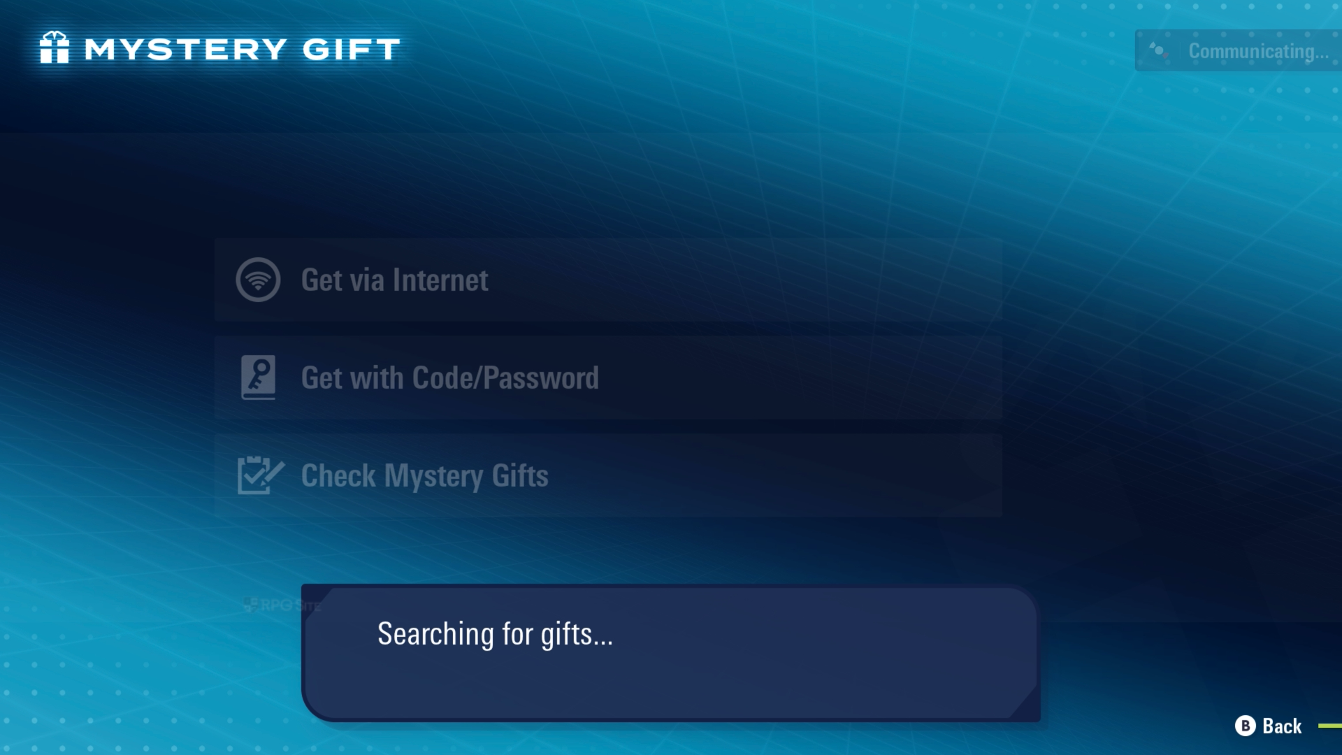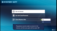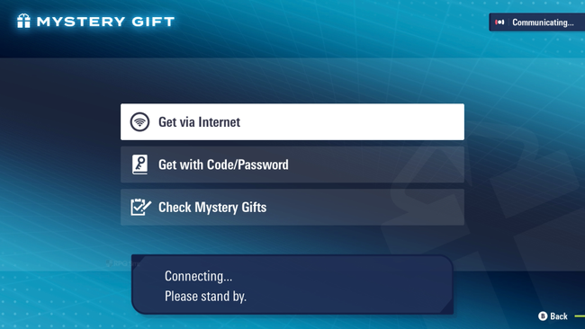 Once you have completed the requirements detailed here, you will have Mable's Research and Link Play visible in your phone. Select Link Play and then the Mystery Gift option. You can now select: Get via Internet, Get with Code/Password, and Check Mystery Gifts.