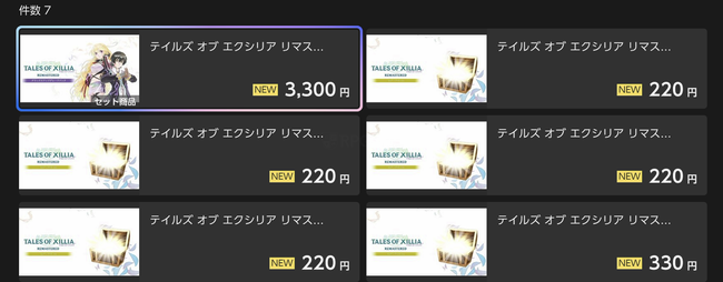 Beyond the original game DLC, Tales of Xillia Remastered has the Deluxe Edition DLC, the pre-order bonus, and multiple sets of level-up packs sold digitally. These packs are 220 Yen each in Japan and $1.99 on the eShop in the United States.