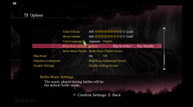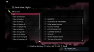 The Battle Music Settings let you play the default music, custom music in order, or custom music shuffled. You set your playlist from the Battle Music Playlist Screen where you can view all the Tales of soundtrack albums and the songs included. You need to manually select the songs you want or "Select All" here. Once you have done this, you can have whatever selected music play during battles.