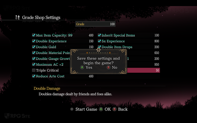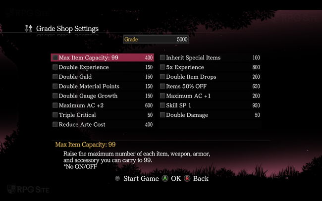 Tales of Xillia Remastered has the following Grade Shop settings available in the beginning: