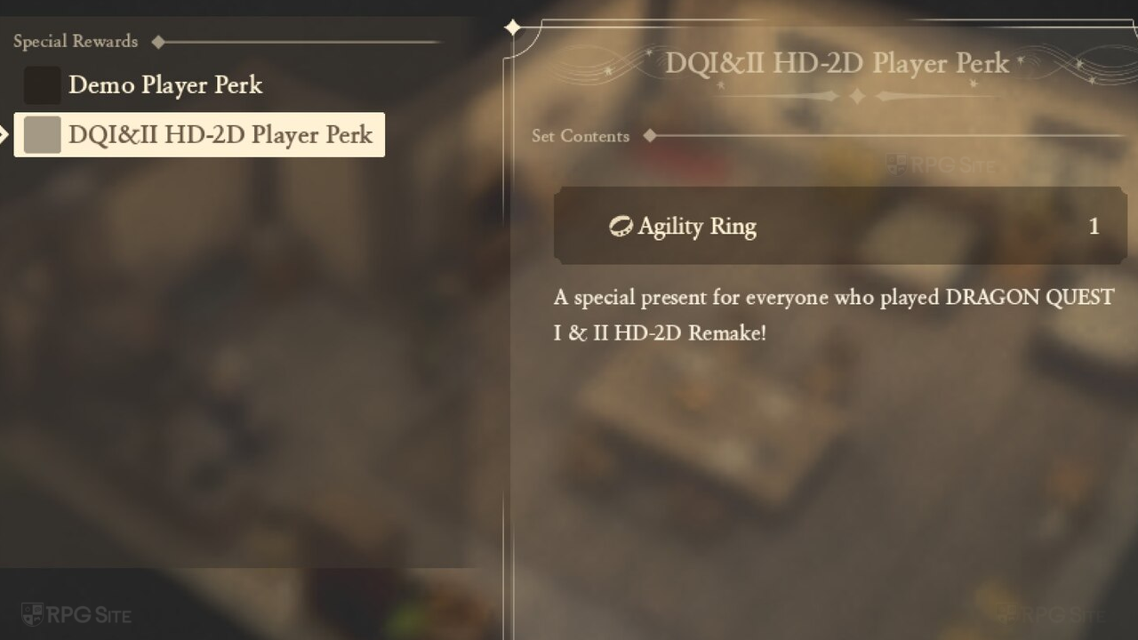 If you have save data from Dragon Quest I & II HD-2D Remake on your system (or cloud for Steam), you will be able to receive the Agility Ring.