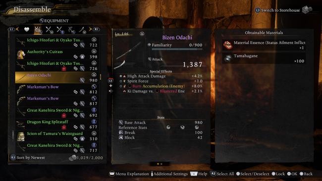 In addition, some of the items that can be disassembled may have a rare moment where they can also net a bonus Material Essence. This will be essential when you check the Reforge menu later on.
