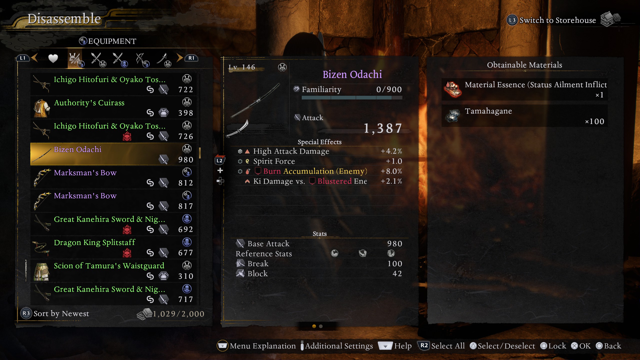 These materials can instead be obtained by discarding any excess equipment via the Disassemble menu, and the material you get will depend on the type of item you are disassembling: