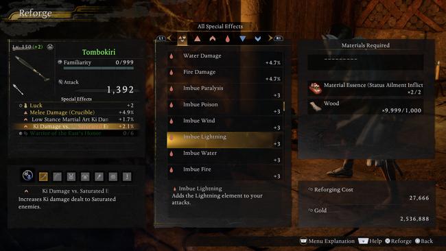 A reforge will also cost a Material Essence based on the skill category you have chosen, in addition to a number of basic disassembly materials. If you followed our earlier advice in disassembling unnecessary gears, you may find that you have already gathered enough essences to perform the reforge.