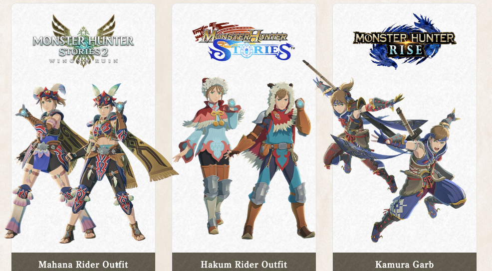 - Monster Hunter Rise save data in Monster Hunter Stories 3: Kamura Garb