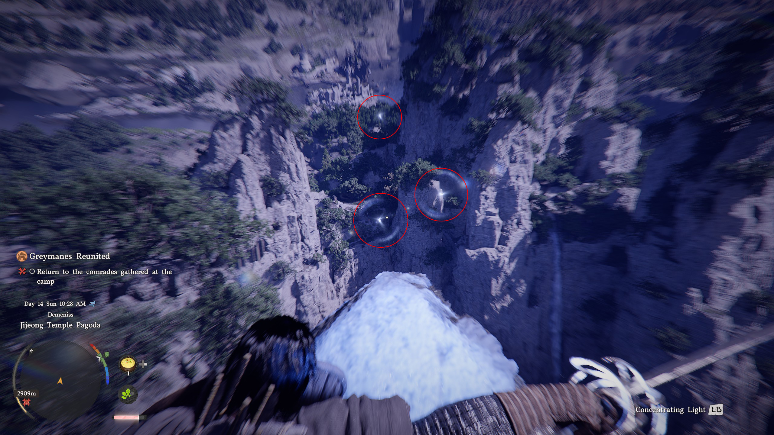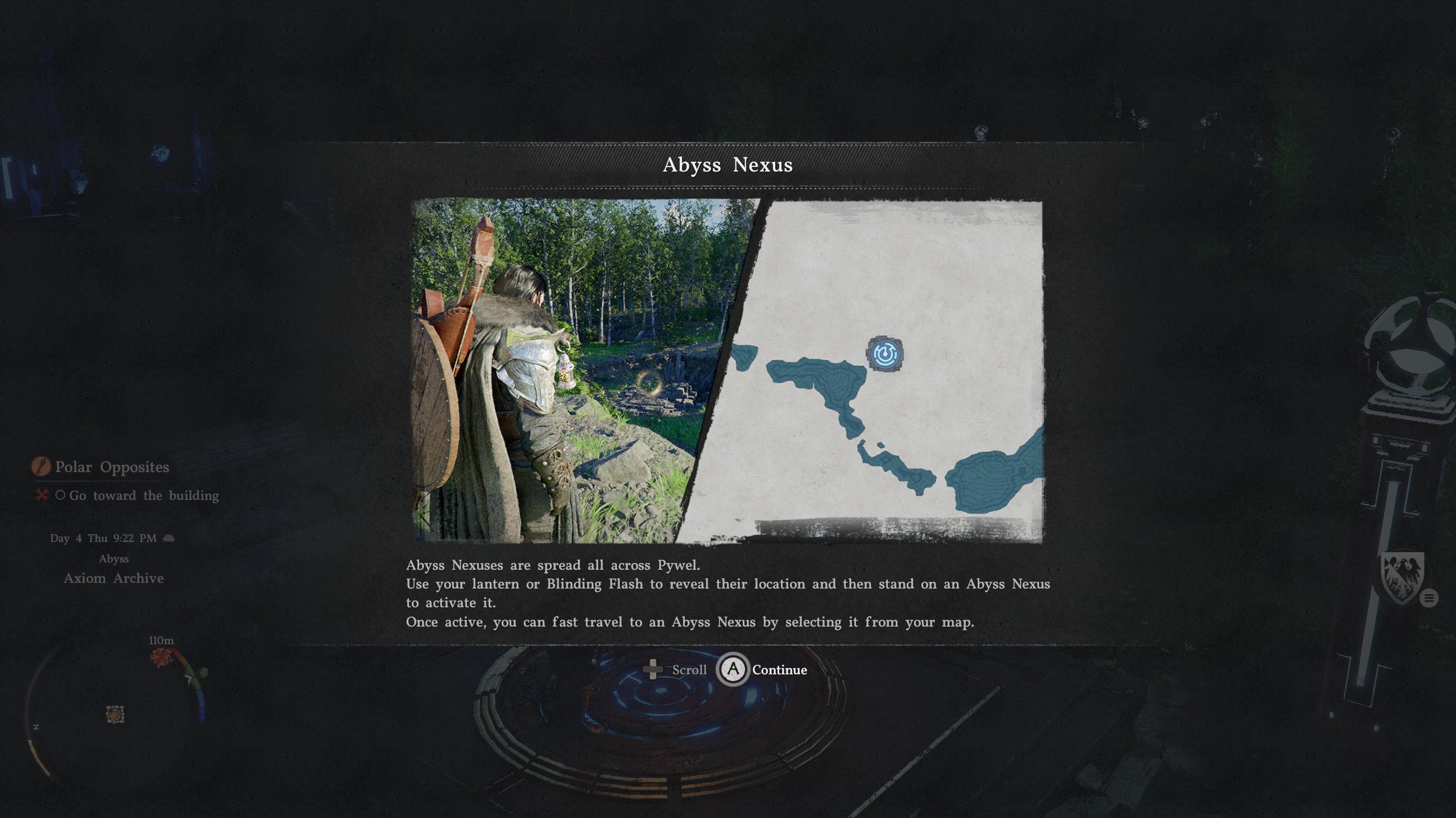 This guide will not show you the exact spot of where every single Abyss Nexus fast travel spot is in Pywel. Instead, I'll show you how to spot them, so you're more aware of what to look out for as you traverse throughout Pywel. The tutorial tooltip you receive for fast travel points is a bit vague at first. It merely tells you to rely on either your lantern or Blinding Flash (L1/LB + L2/RB) technique to reveal their location, but doing it won't always tell you where they are if you're too far from them.