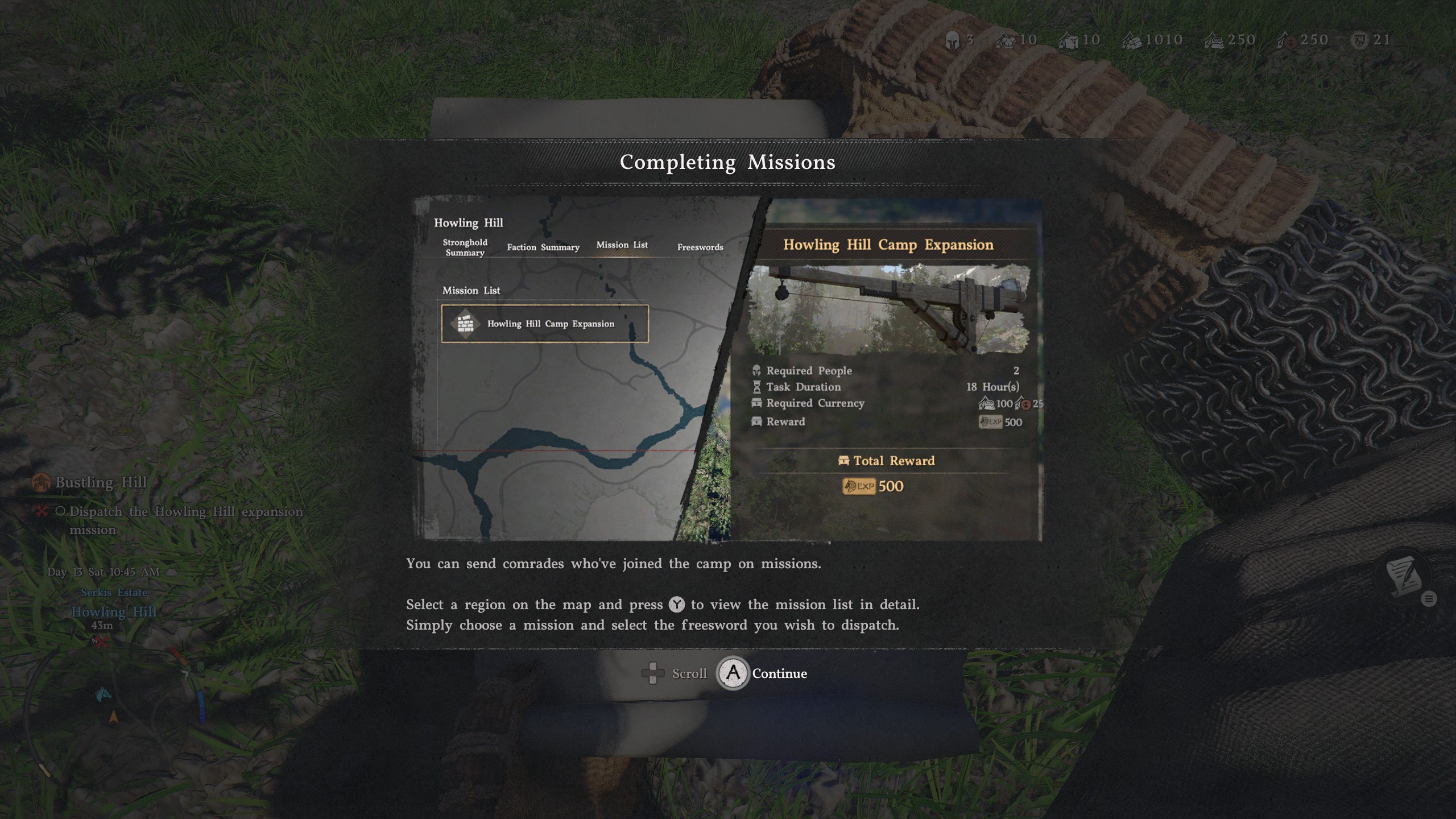 Now, press Triangle/Y and navigate over onto the 'Mission List' tab. Simply select the Howling Hill Camp Expansion option and select the freeswords to dispatch them.