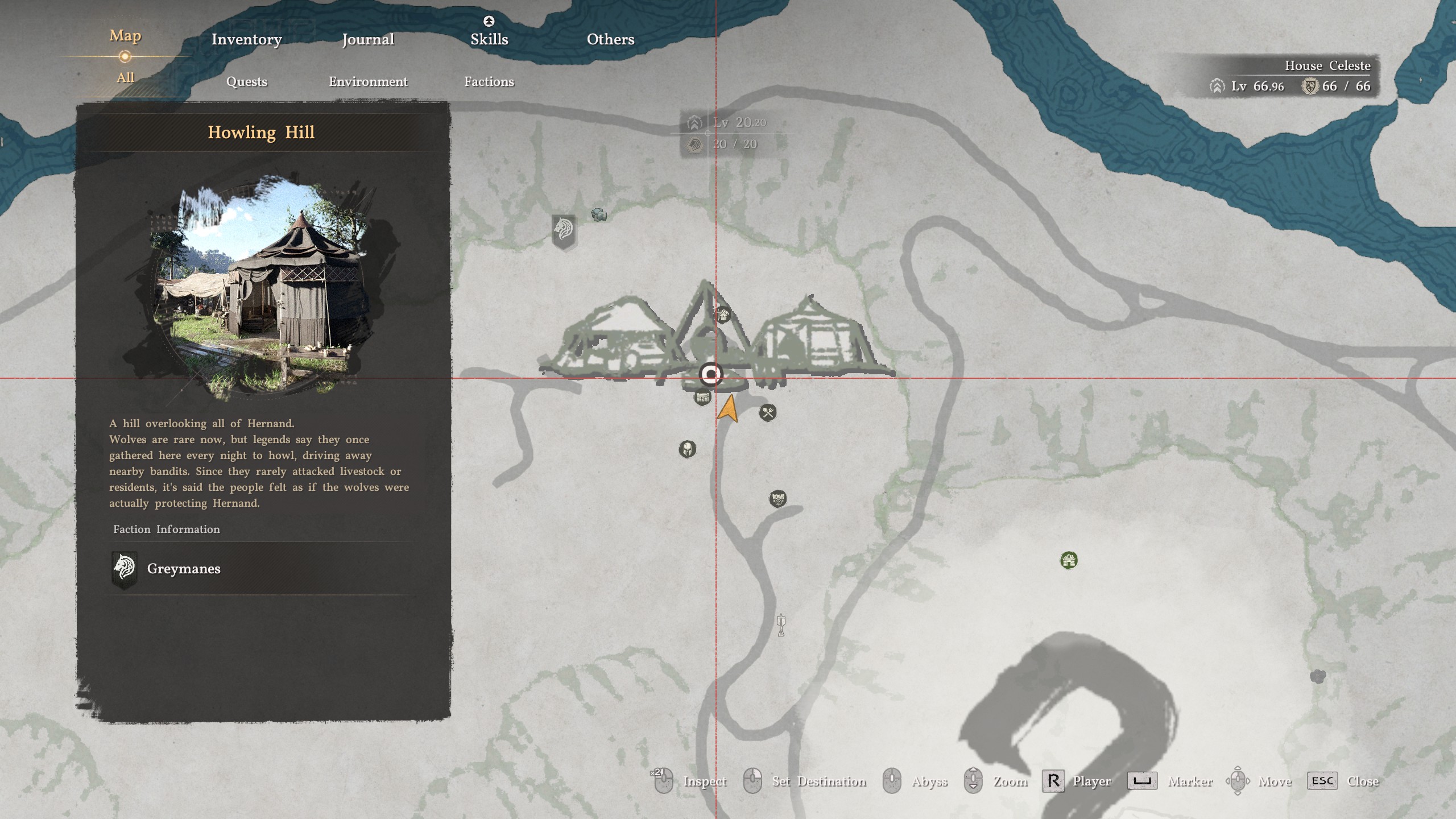 Open the Map screen and make sure you have the 'All' tab highlighted. Have the cursor hover over Howling Hill and adjust the zoom level, so a bullet point appears over Howling Hill.