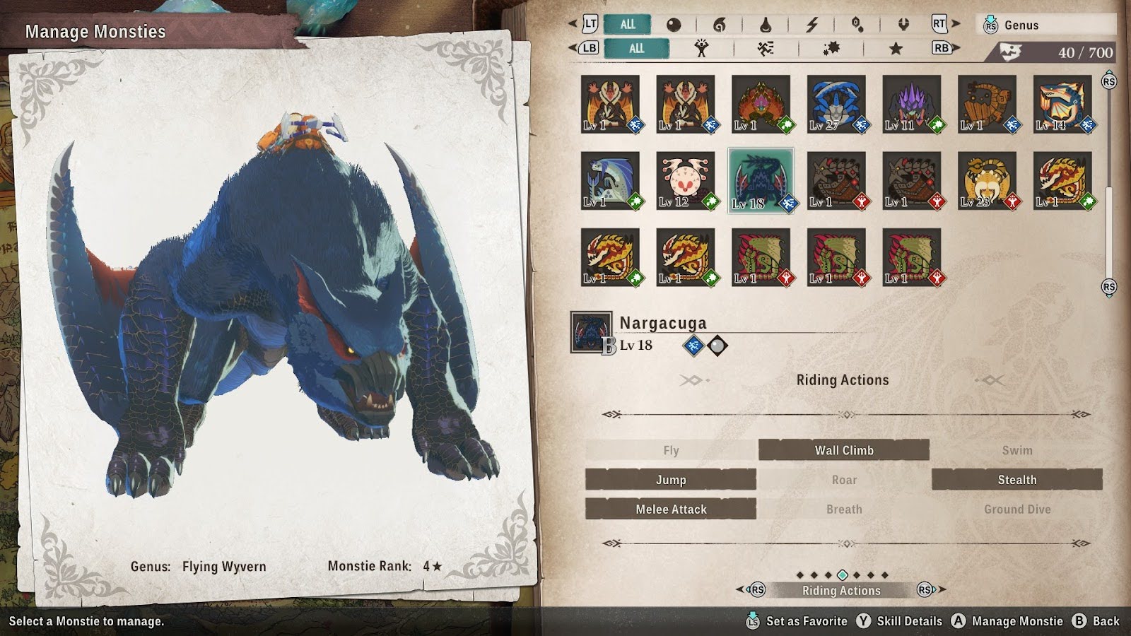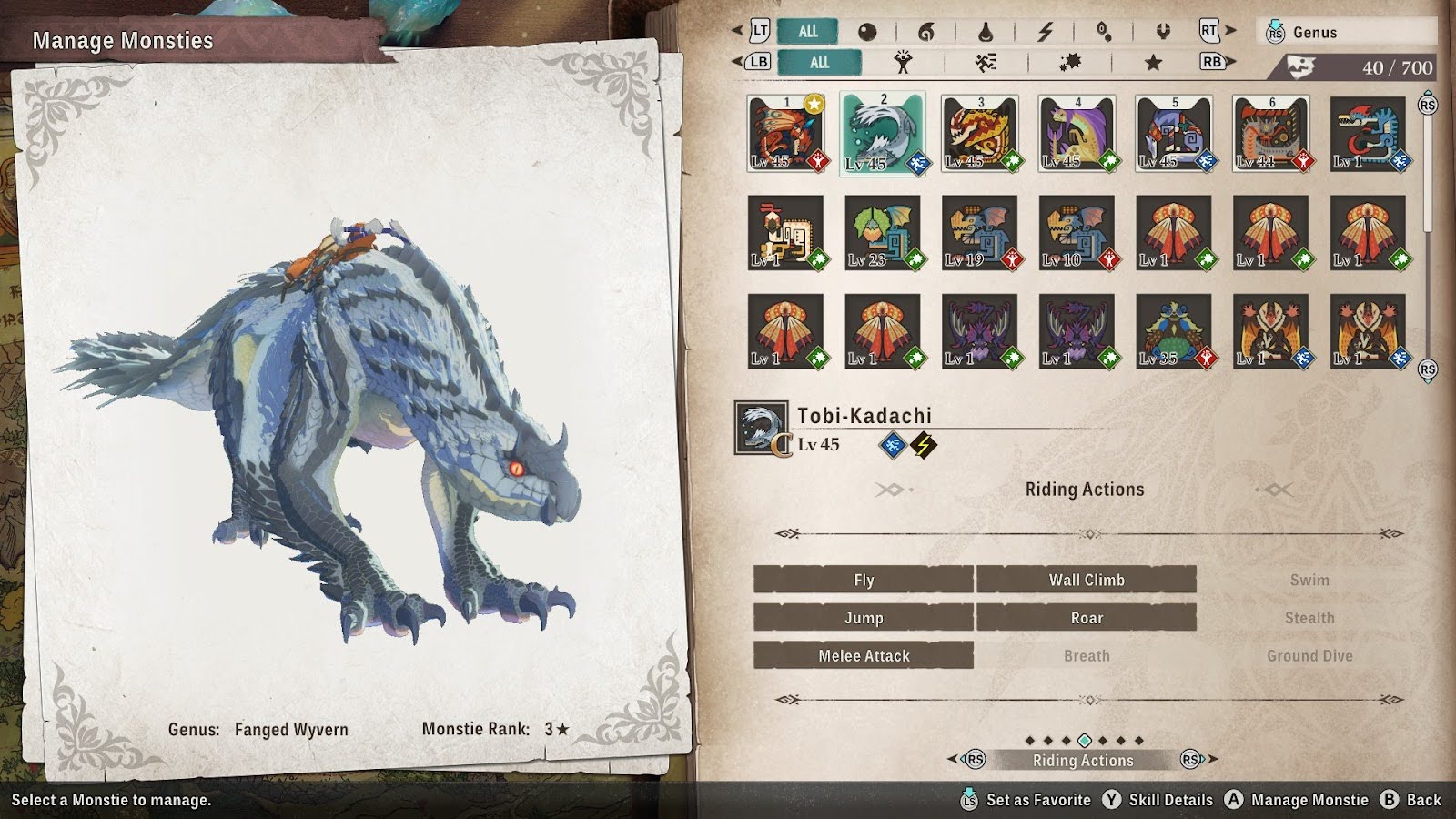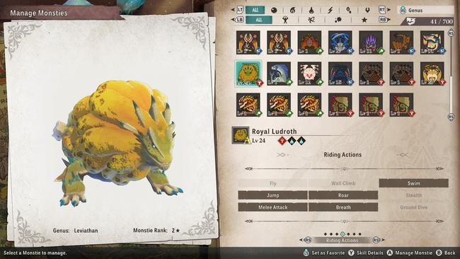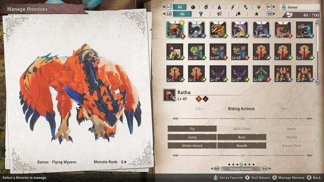 These first five all get lumped together as they’re all usable by the Rathalos you get at the start of the game. You’ll have this Monstie from the moment you first get access to the open world, so there’s nothing to worry about here.