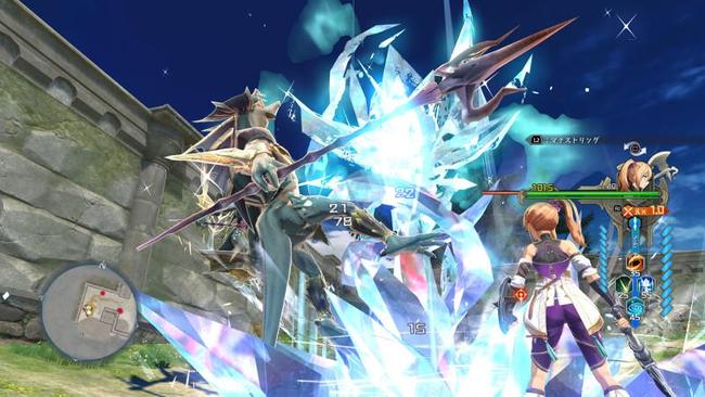Other than getting blown away, the damaged enemies will also get different ailments based on who was thrown (Adol: Burn, Karja: Frostbite)