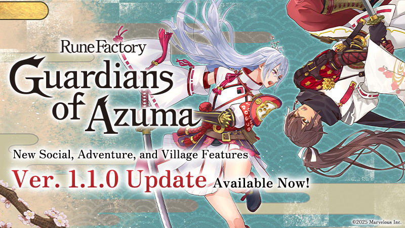 Marvelous has released the new Rune Factory: Guardians of Azuma version 1.1.0 update for Nintendo Switch 2, Nintendo Switch, and PC (Steam) featuring new social, adventure, and village features.