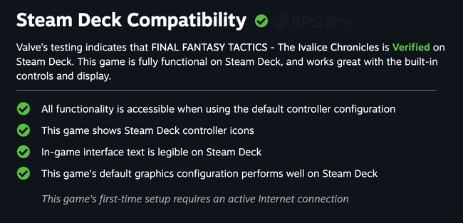 The Steam Deck rating for Final Fantasy Tactics - The Ivalice Chronicles from Square Enix has been updated from Playable to Verified by Valve.