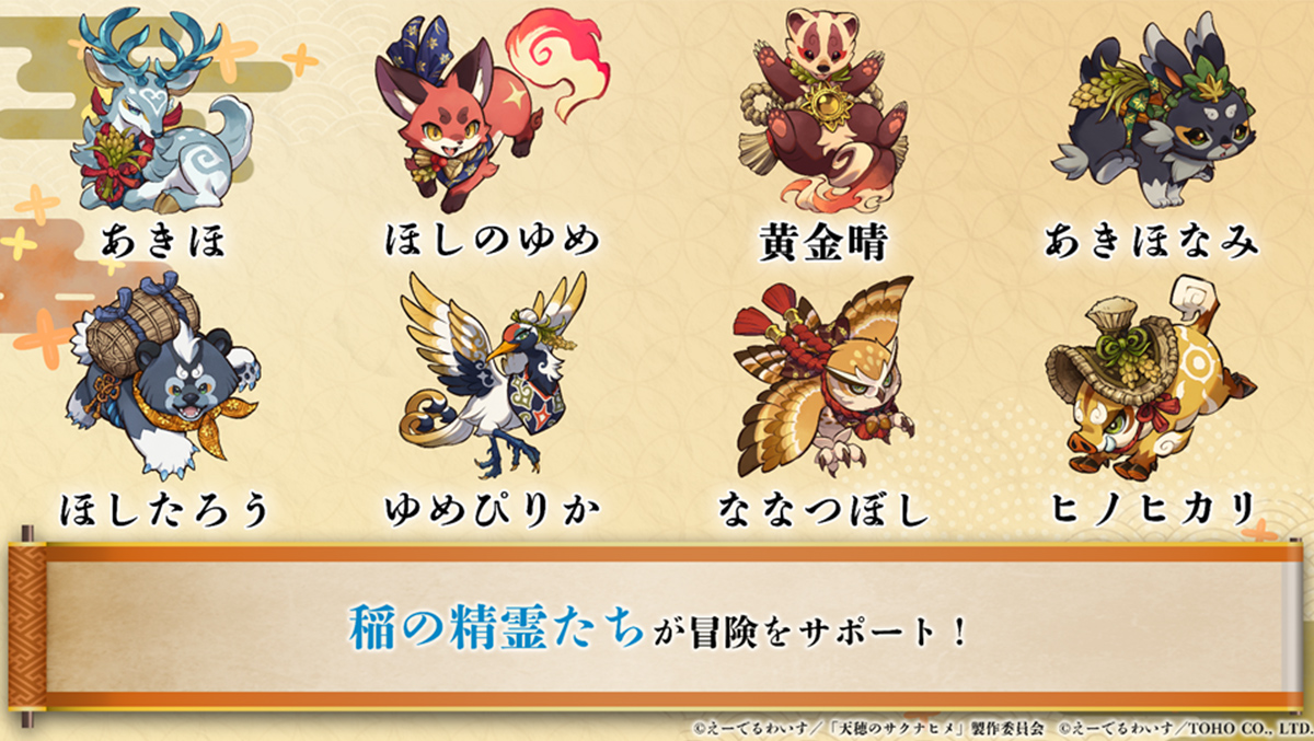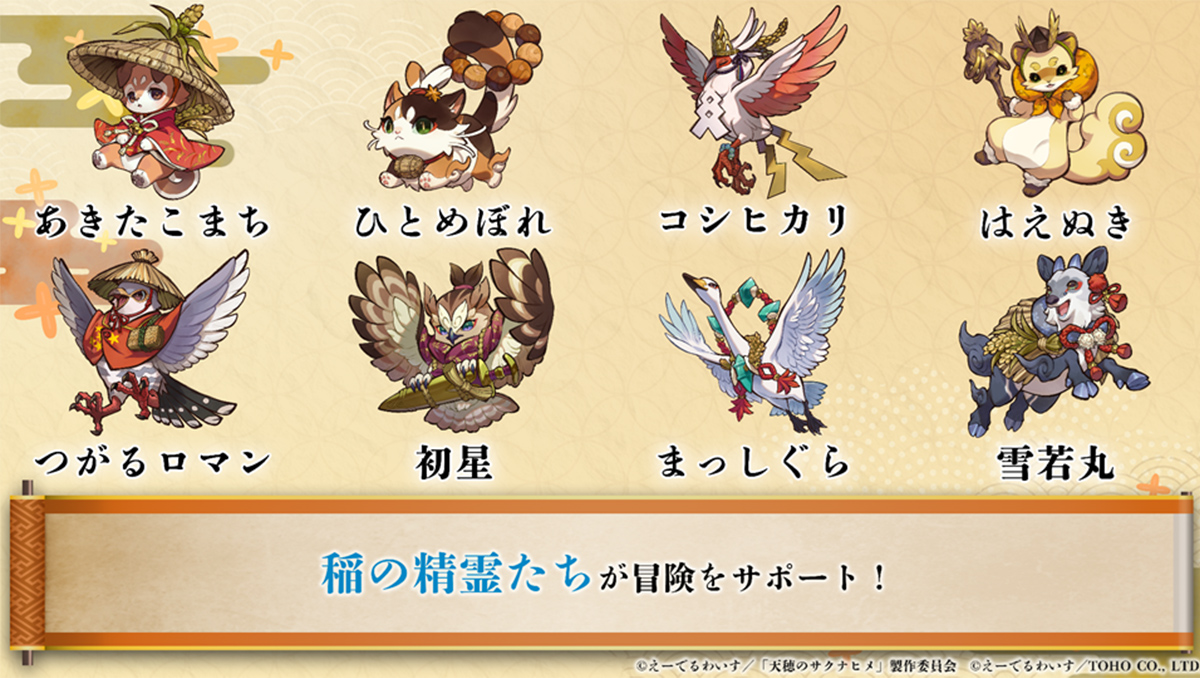 There are currently 16 types of rice that can be grown, and each of them will also have a representative spirit, of which players can include one in their battle party compositions. A party consists of up to 4 characters, and the player can control the leader in the dungeon explorations.