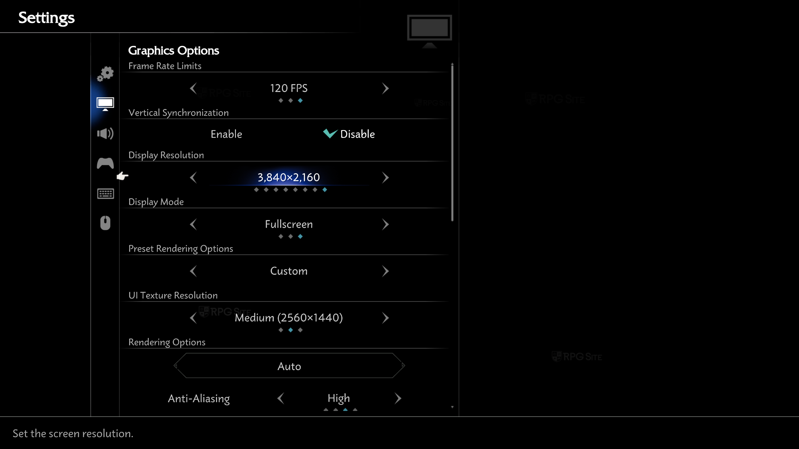 Octopath Traveler 0 on PC supports 720p to 4K resolutions, three frame rate targets (30, 60, 120fps), the option to change display mode (windowed, borderless, fullscreen), Preset Rendering Options, UI texture resolution (720p, 1440p, or 4K), and then Rendering Options (graphics preset). To clear up the confusion with the naming of certain options, you can basically adjust the UI texture resolution and graphics options together with the "Preset Rendering Options" while the "Rendering Options" menu lets you adjust just the graphics preset (like in other games) with an auto detect feature. The auto detect feature sets the individual graphics options to High when playing on Steam Deck. The individual options you can adjust are anti-aliasing quality, post-processing quality, shadow quality, texture quality, effects quality, and LOD. Barring LOD which you can toggle on or off, all the options go across low, medium, high, and ultra levels.