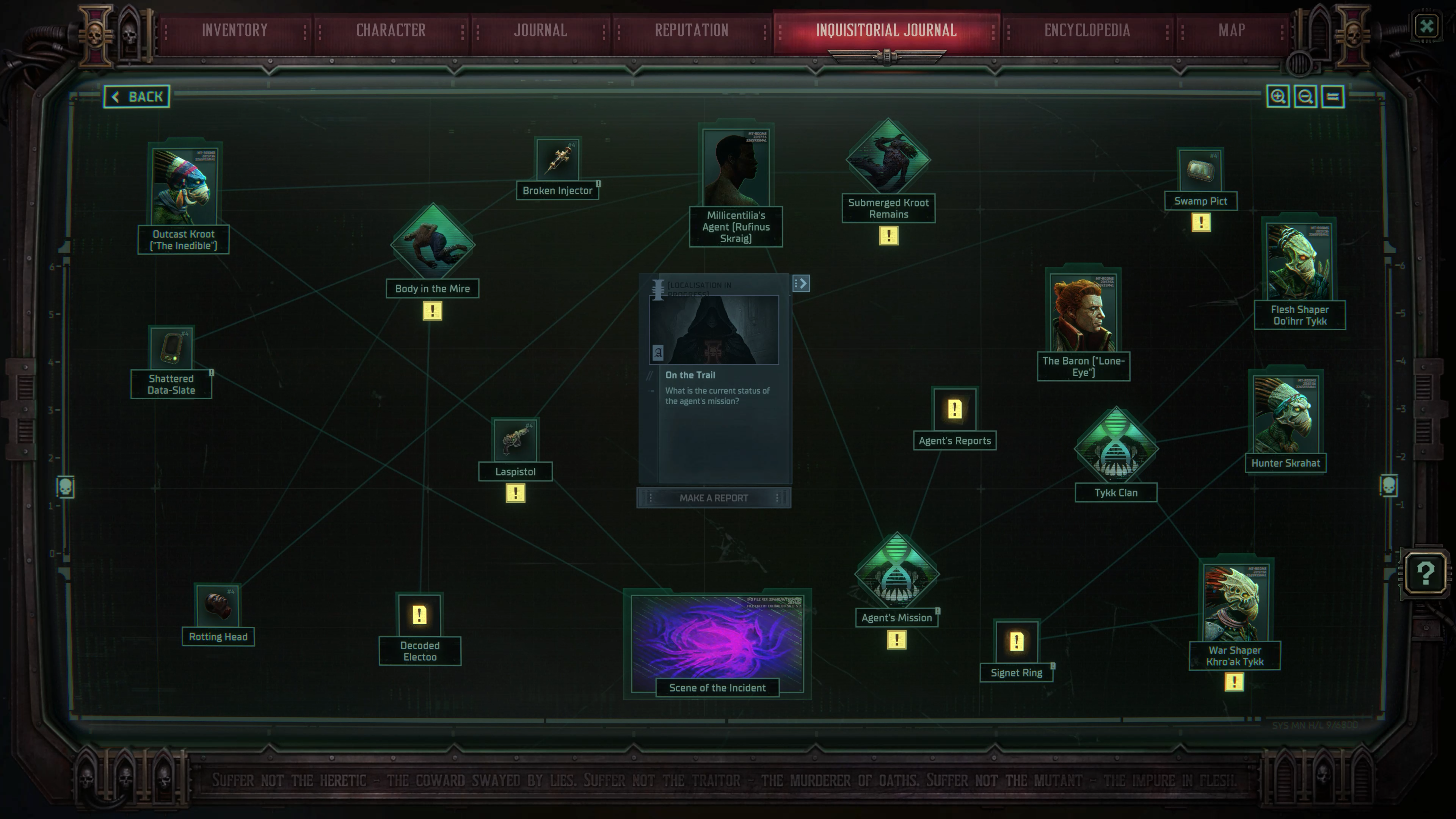Before the Warhammer 40,000: Dark Heresy Alpha launches on Steam on December 16th, Owlcat Games released a new batch of screenshots showcasing party members, detailed environments, grisly combat scenes and even a first look at a mind map from the detective system.
