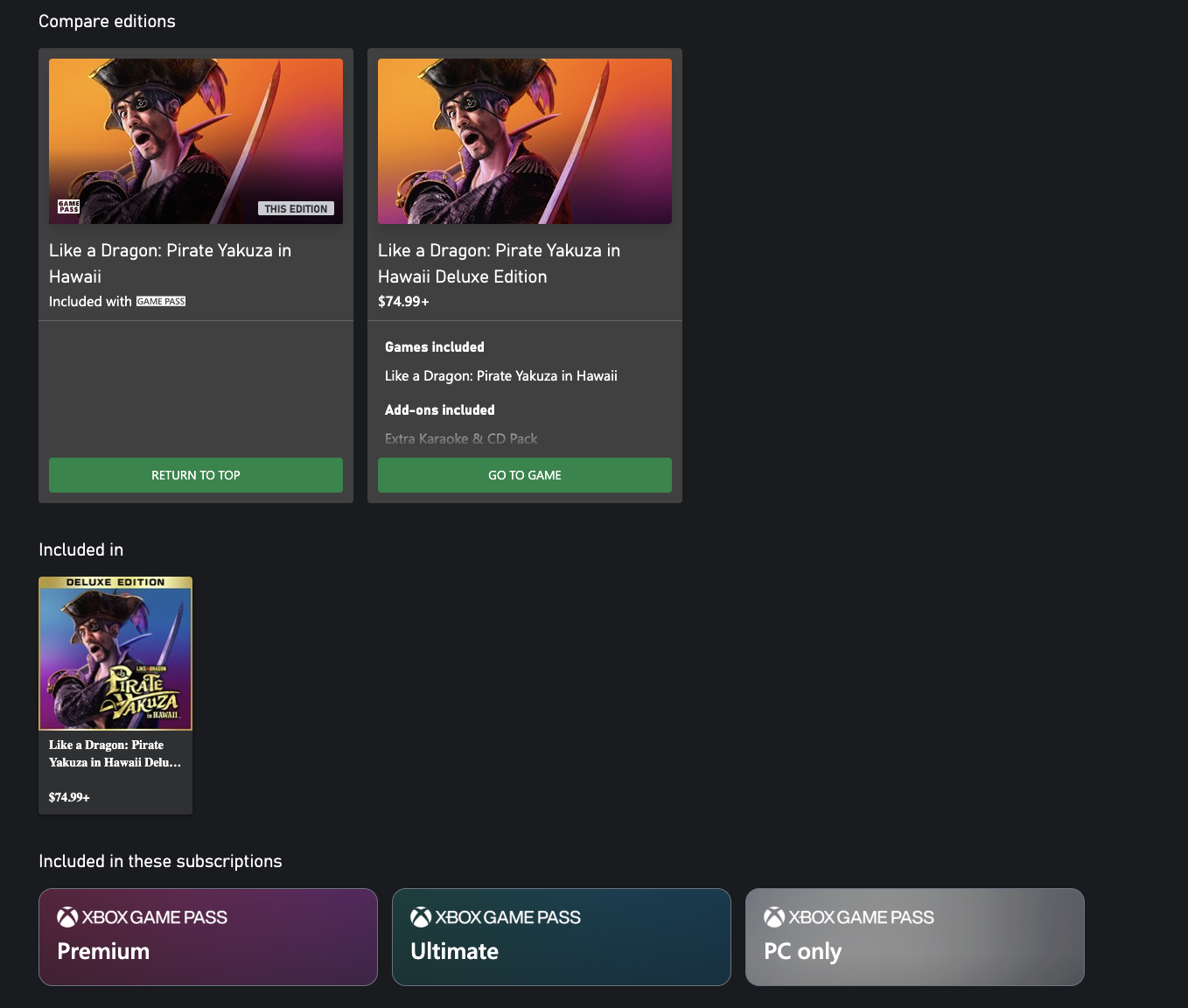 It is now available on Xbox Game Pass Premium, Xbox Game Pass Ultimate, and PC Game Pass. You can queue the download here or on the Microsoft Store via console or PC now. A screenshot of the store page showing the subscription tiers is below: