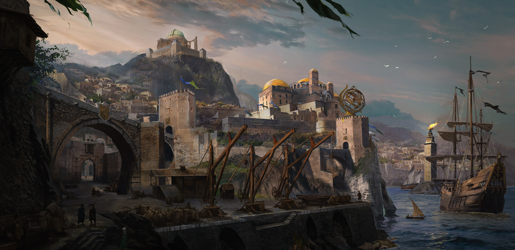 Uxantis: An island renowned for being inaccessible due to the violent currents that surround it, Uxantis is the homeland of the Nauts, a guild that dominates the seas and is the only one to have mastered sea travel. It is here that their ships are built.