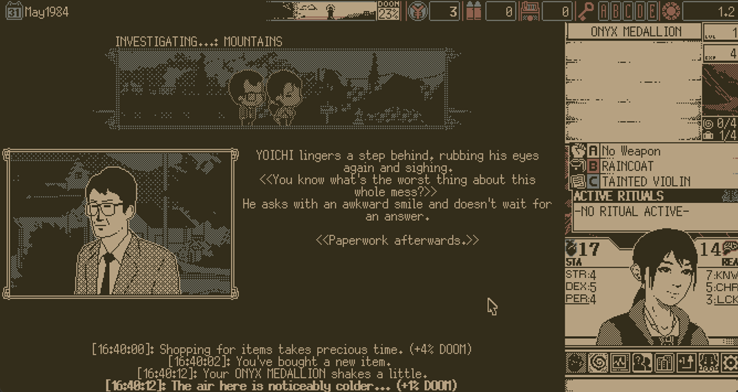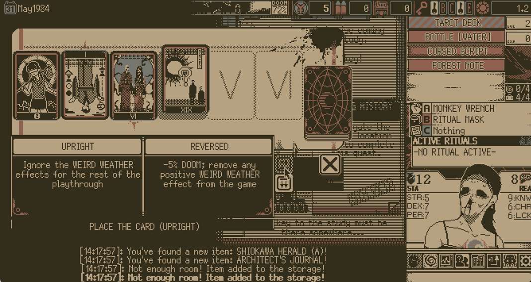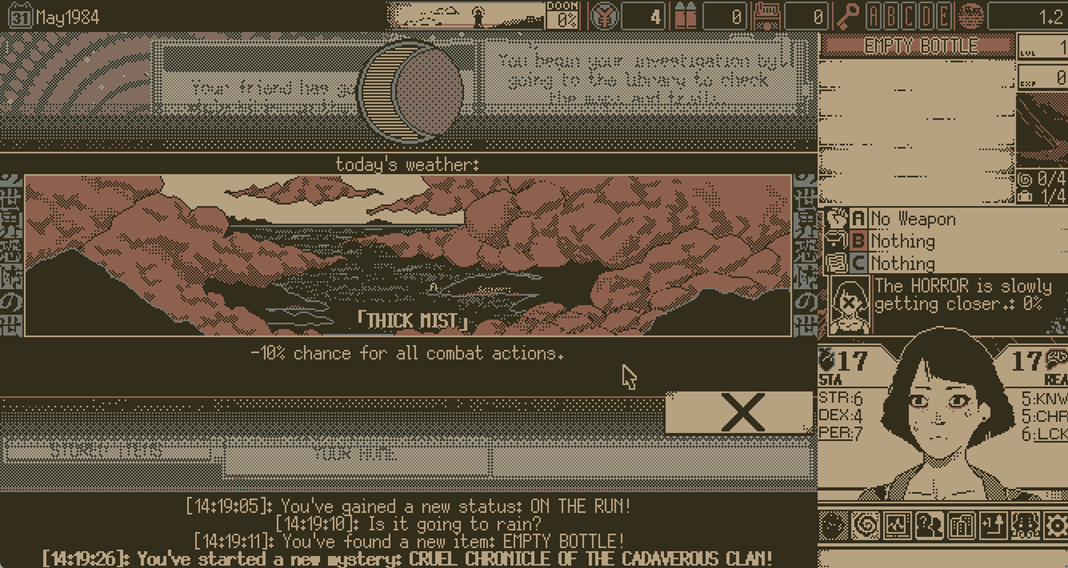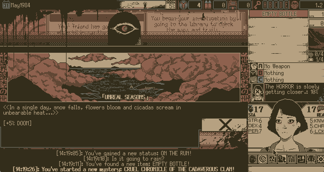 This card-based survival RPG allows you to wander your favorite seaside town of SHIOKAWA solving mysteries under pressure from the ascent of the DOOM Wheel, whilst the ceaseless presences of the OLD GODS loom over your every step.