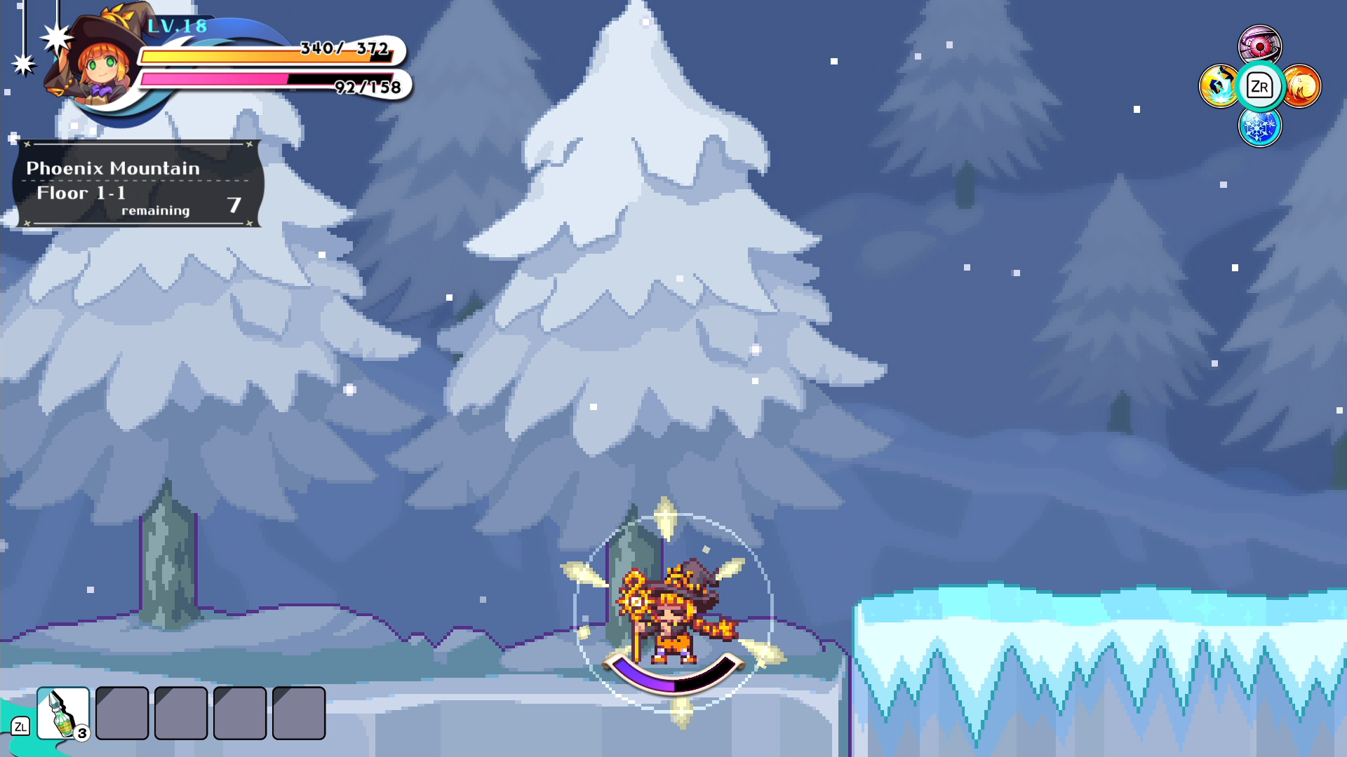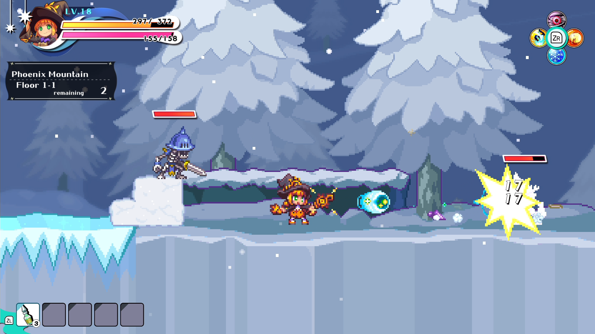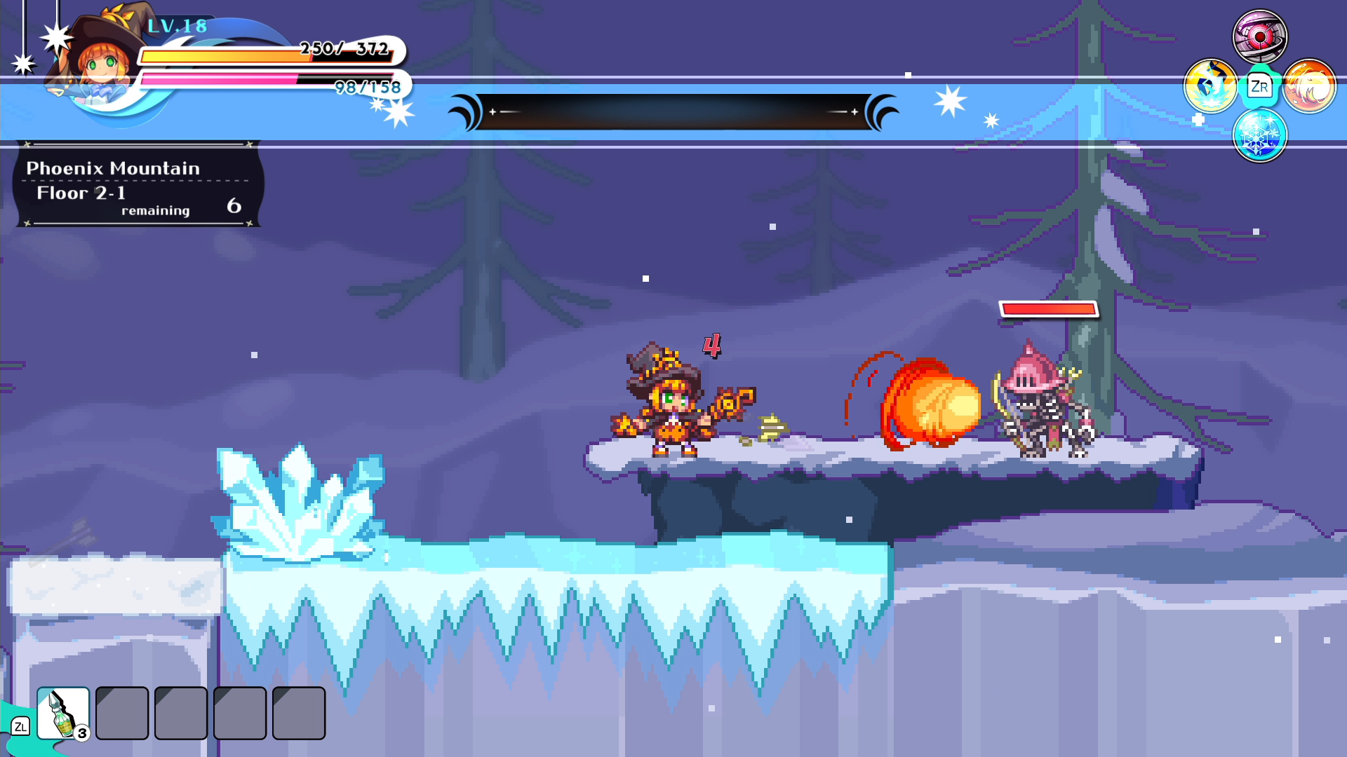 The Wizard uses a variety of spells to keep up the pressure from long range. Different spells have varying attack directions & durations, and the Wizard can use a charge ability to absorb enemy attacks to gain SP.