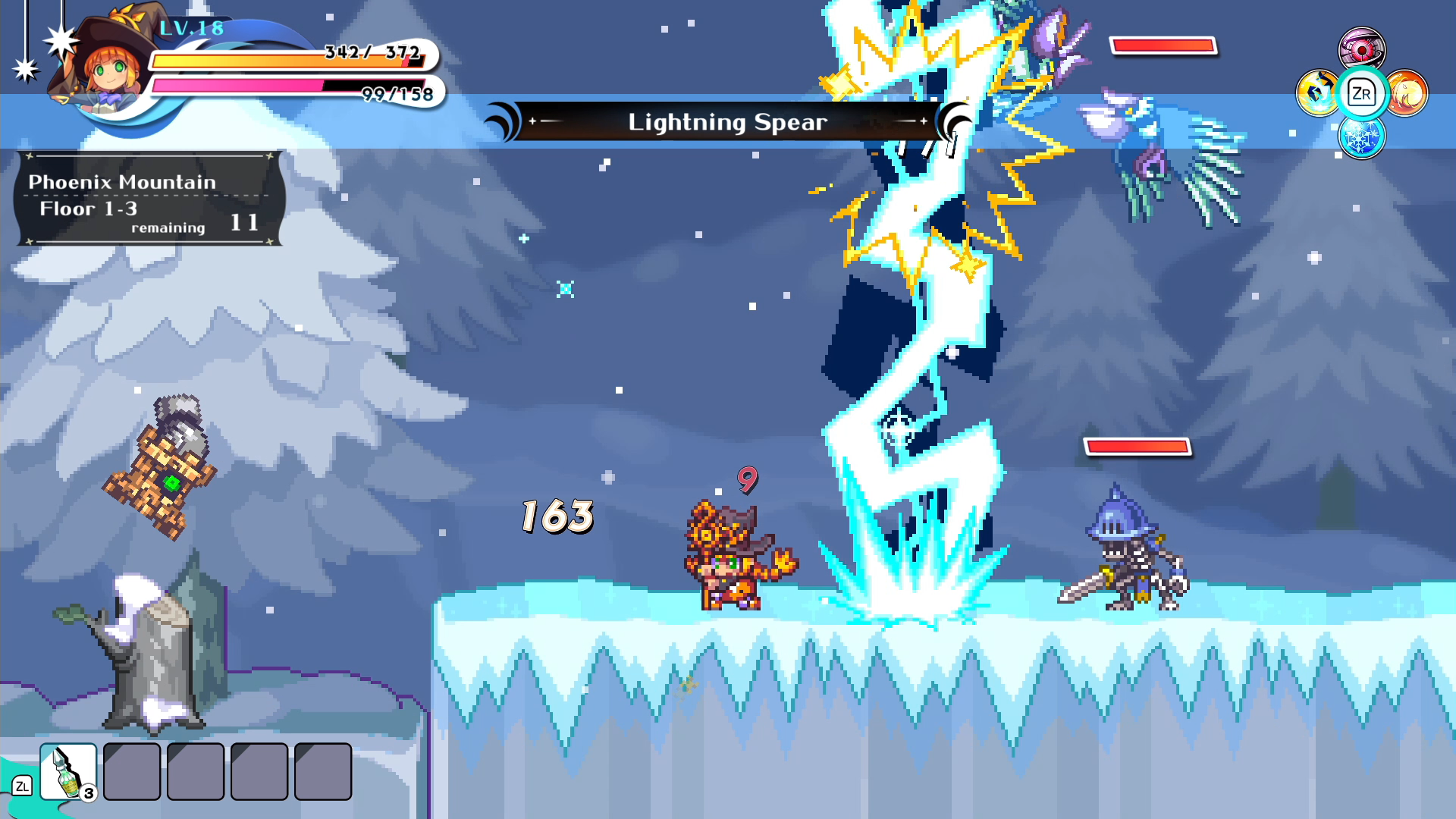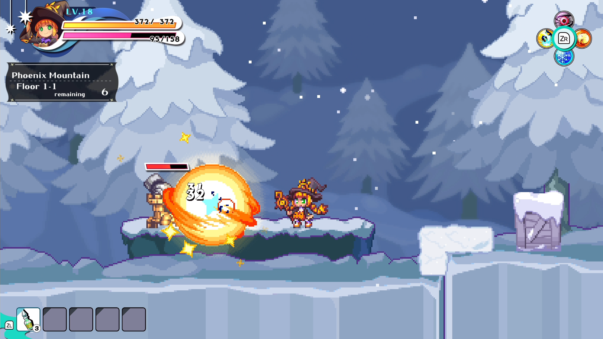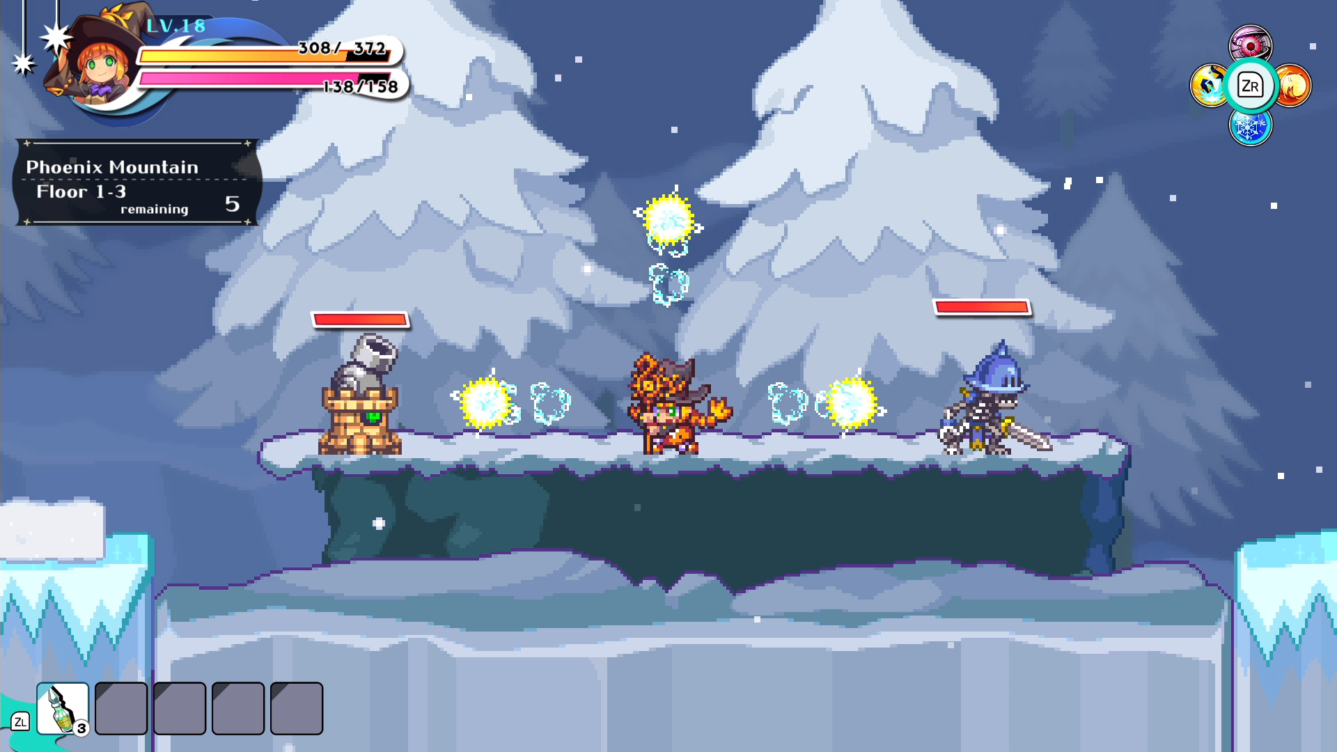 The Wizard uses a variety of spells to keep up the pressure from long range. Different spells have varying attack directions & durations, and the Wizard can use a charge ability to absorb enemy attacks to gain SP.