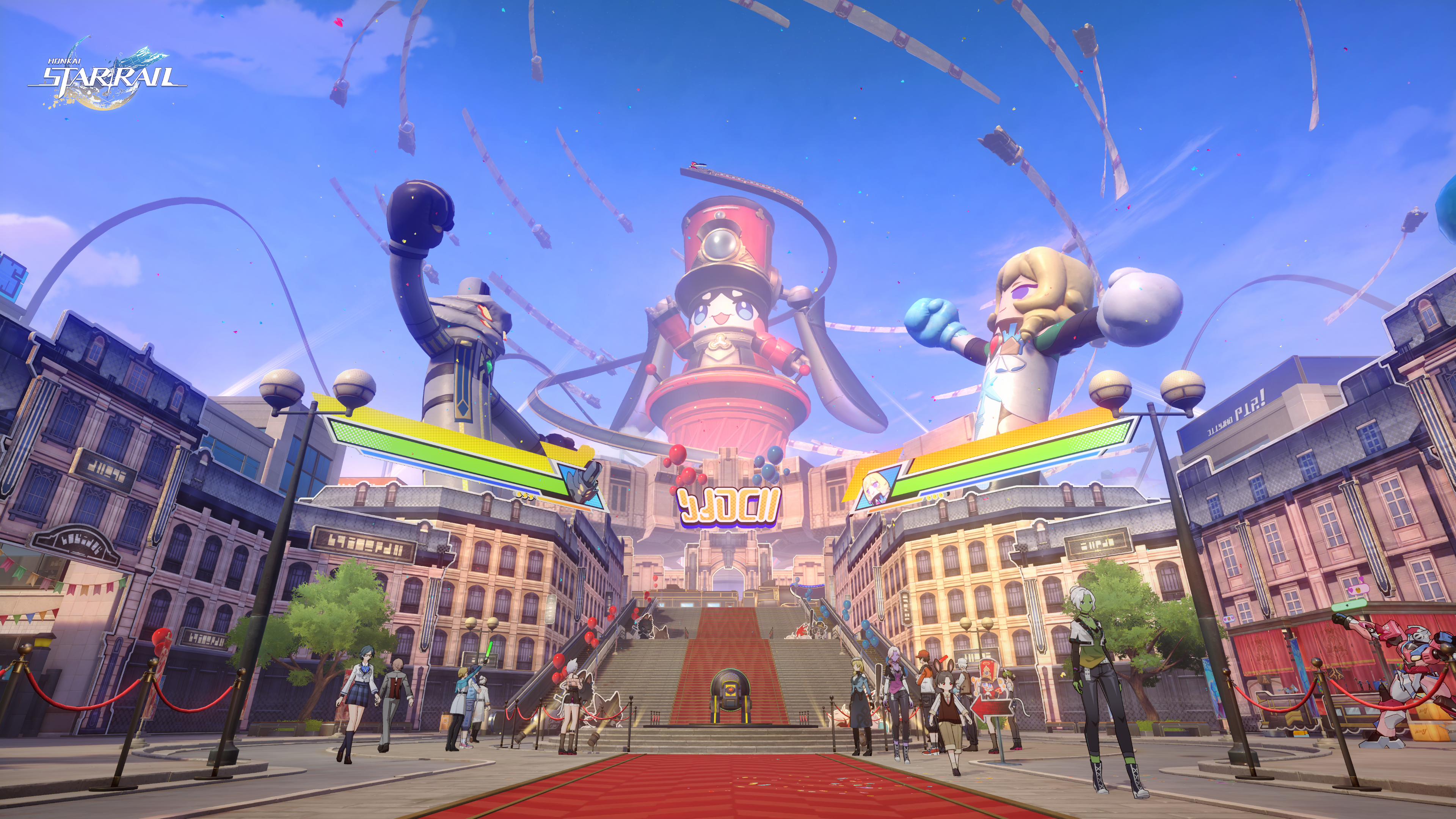 As a large-scale celebration honoring the legendary experiences of the Astral Express, Star Rail FEST will feature three major open zones: the Belobog Zone, Xianzhou Luofu Zone, and Penacony Zone. Citizens of Planarcadia can board a special Pom-Pom front shuttle express through Interplanar Jump to enjoy the highlights of their trailblaze journey. Here, you can witness giant balloon figures modeled after Supreme Guardian Cocolia and the Destruction Engine in battle, immerse yourself in the heart-pounding duel against the Lord Ravager Phantylia at Scalegorge Waterscape, and charge headlong at The Great Septimus under the tune of Robin's singing. On the other hand, as the organizer of this FEST, the headquarters of Pearluxe Corp — Pearluxe Tower — will also be one of the latest areas to be unlocked for exploration. Inside the tower, not only will a newly ultra-poseable model, "Alloy King Pom-Pom," be on display, but also a variety of mechatron-themed interactive activities that attendees won't want to miss!