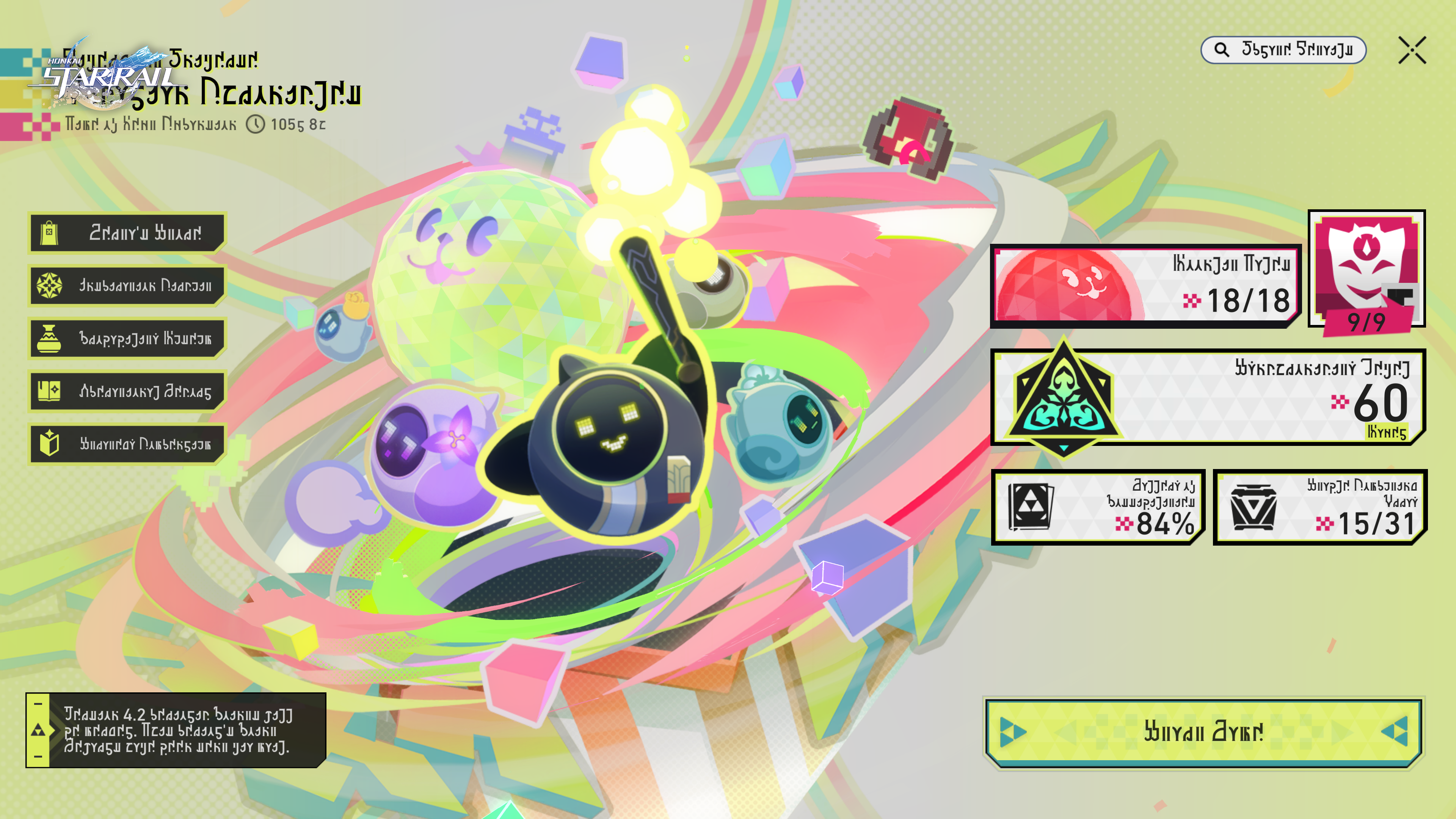 After arriving at Planarcadia, the Trailblazer successfully obtained the mask of the supplicant to participate in the Phantasmoon Games and defeated the hottest local streamer Sparxie, becoming the top-tier trending of Planarcadia. Currently, in order to carry forward the spirit of Trailblazing, and give the people of Planarcadia a chance to keep up with Star Rail, Pearl, the CEO of Planarcadia, has decided to collaborate with the members of the Astral Express to hold a grand exposition called Star Rail FEST, themed around the adventurous journey of the Astral Express. With the much-anticipated Star Rail FEST about to commence, in the background the Phantasmoon Games are unfolding with unstoppable momentum, as the War of the Supplicants is on the verge of eruption — What direction will the story take next?