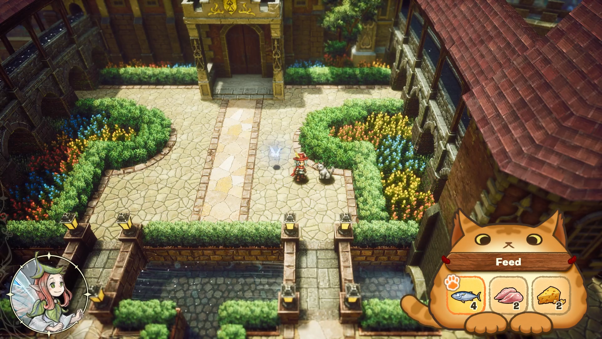 You can feed cats you’ve brought back to town, from a selection of fish, meat, and cheese. Different cats have different tastes, and filling them up on the flavors they prefer will make them like you more.