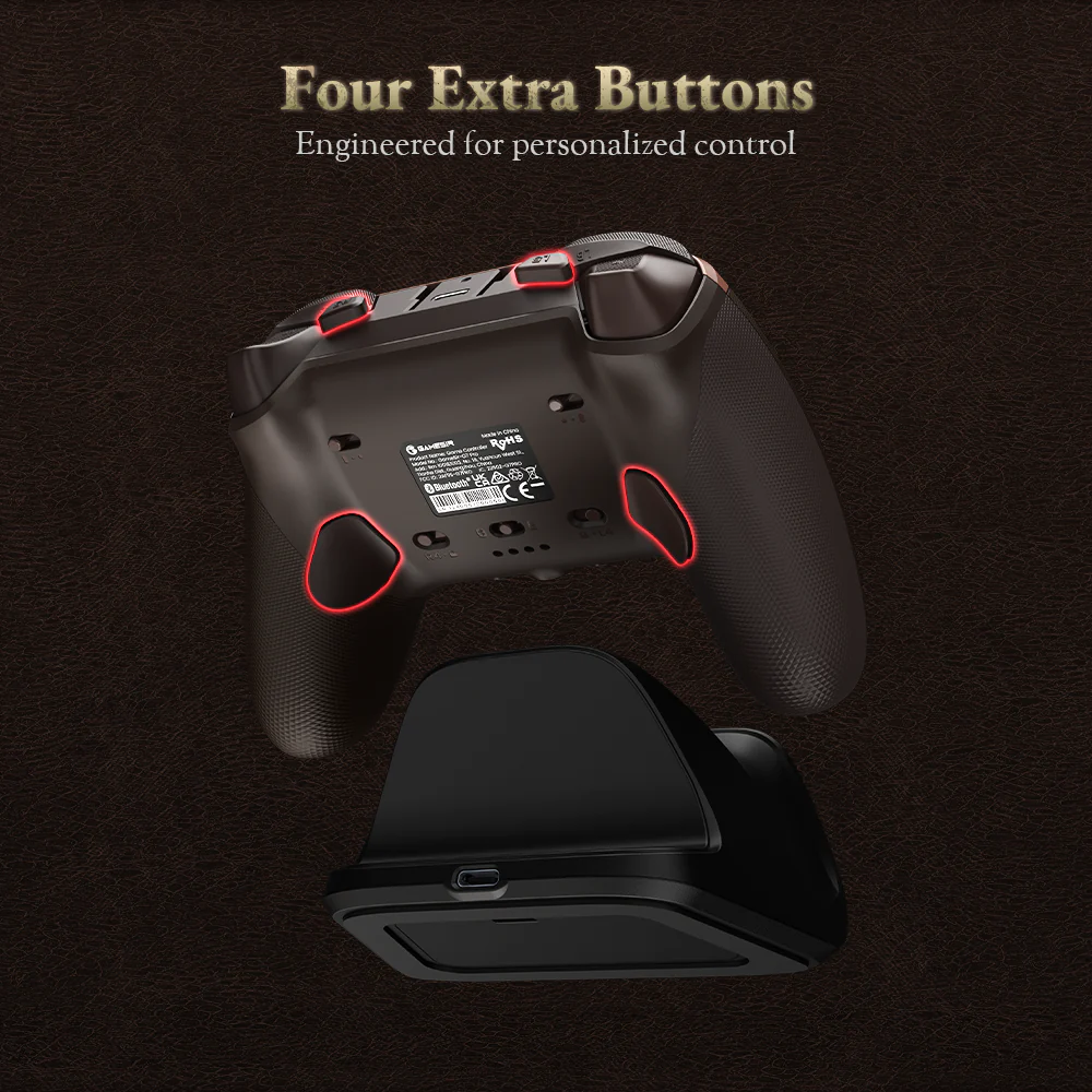 Officially licensed by Xbox, the G7 Pro DD2 Edition supports seamless wired connectivity for Xbox consoles, 2.4G wireless or wired connections for PC, and Bluetooth for Android. A mode switch on the back of the controller lets users switch between modes effortlessly.