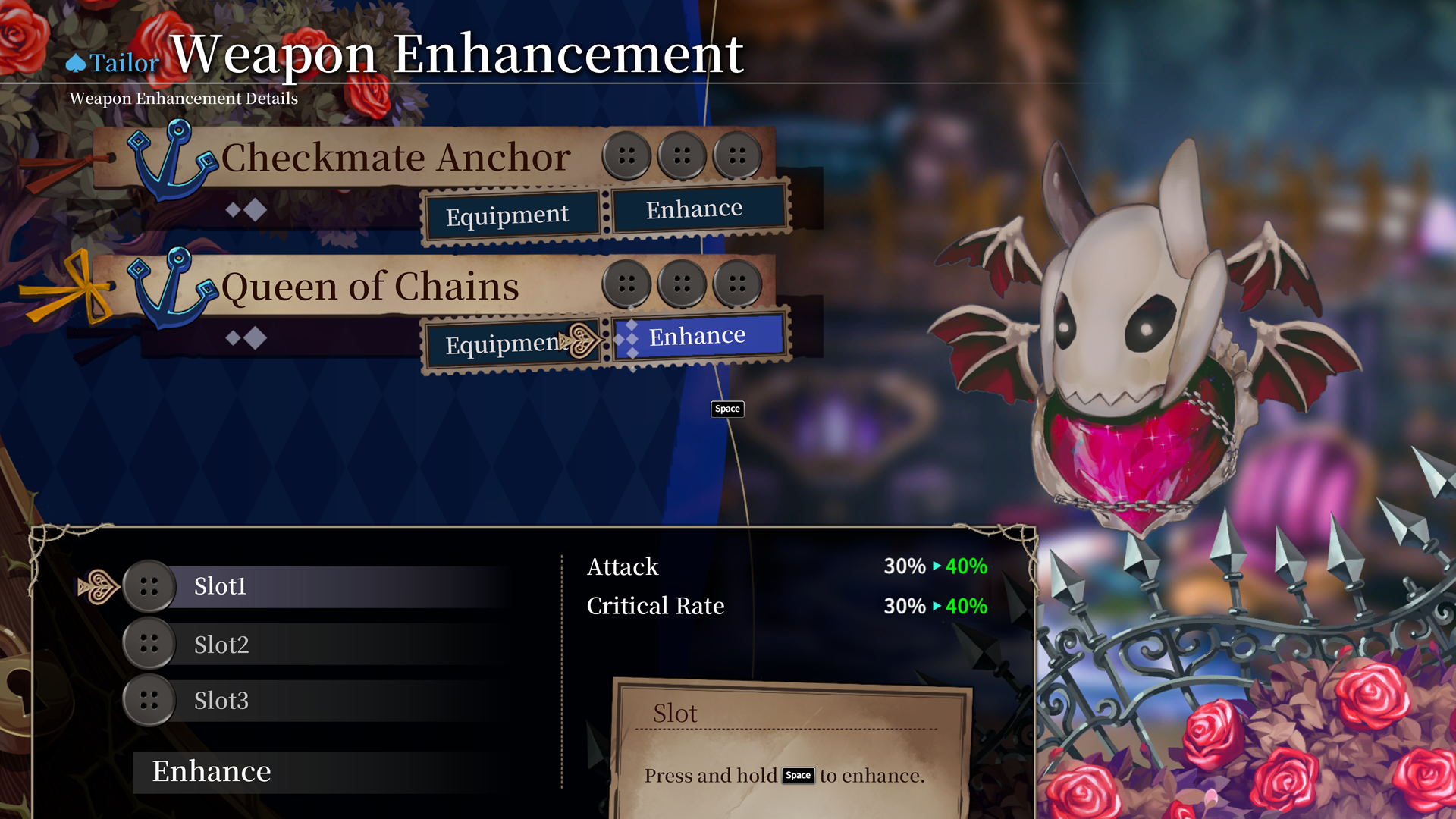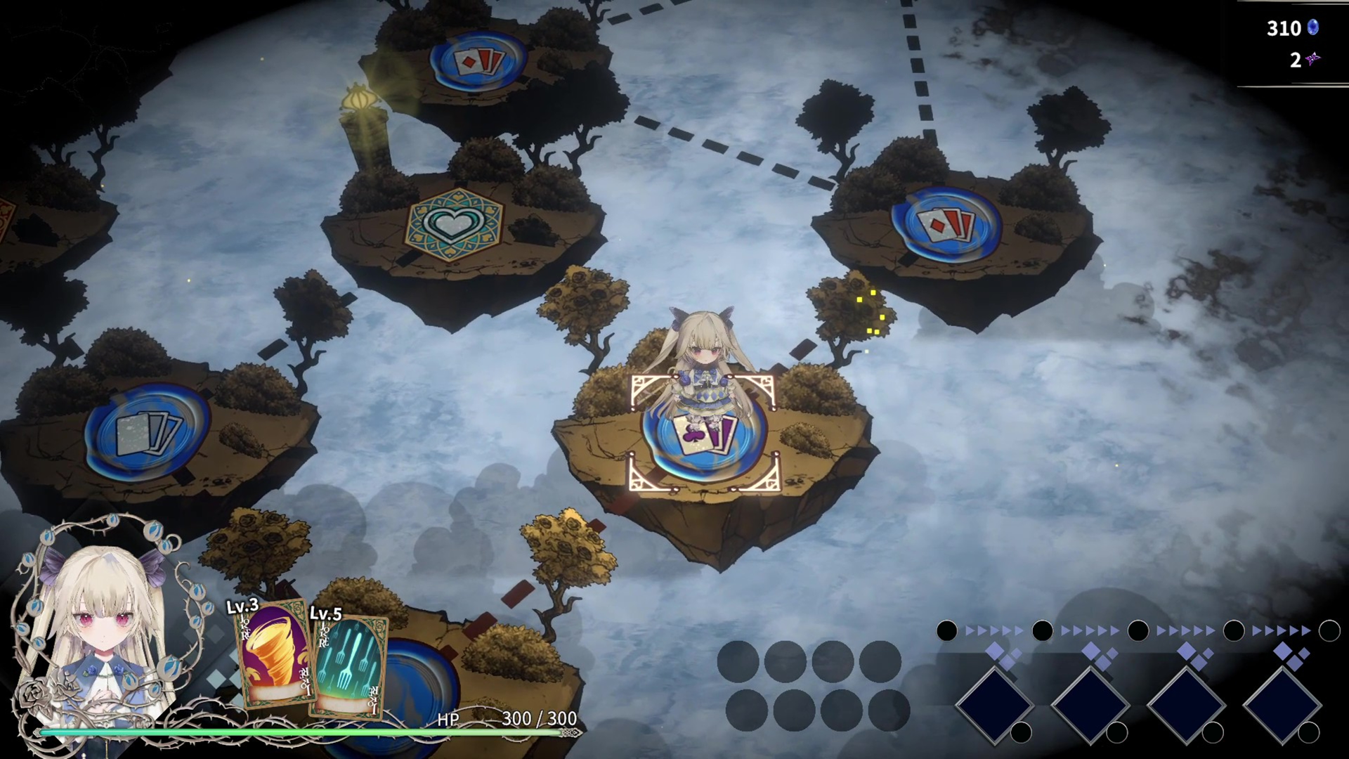 Finally, players can switch between “World-Immersion Mode” (which minimizes UI, prioritizes certain visual effects, and keeps the camera closer with a side-angle view) and “Action Mode” (which pulls the camera back to a top-down perspective, keeps critical UI elements visible, and prioritizes combat and action). Clearing a stage rewards players with skill cards that when combined with cards in Alice’s hand, multiply Alice’s strength in combat. Dying sends Alice back to the Tea Party Hall to plan her next descent.