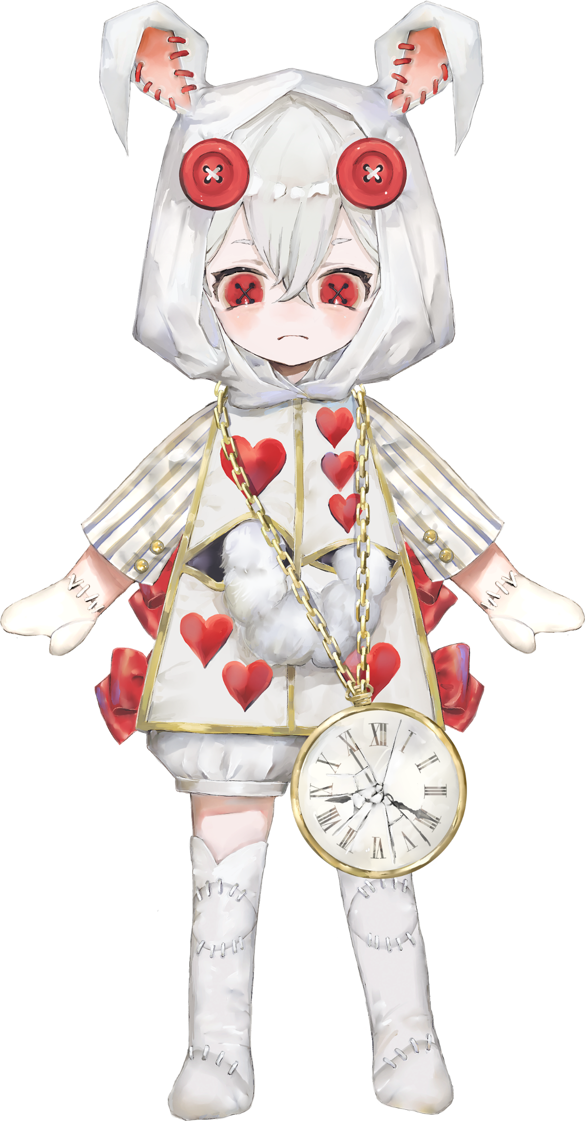A girl who serves as a guide in Wonderland. She acts as a guide for the Death Game participants. While she appears to be a young girl, she speaks in a surprisingly mature manner. Although she is polite to official participants, she is harsh toward Mary, the uninvited guest. The organizer controls and supervises her, even going so far as to sew her mouth shut if she talks too much. The white rabbit both fears and loves the organizer. Is that love her sin?