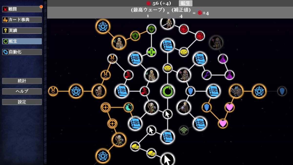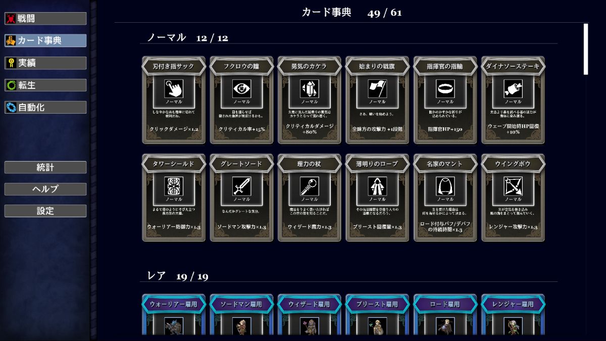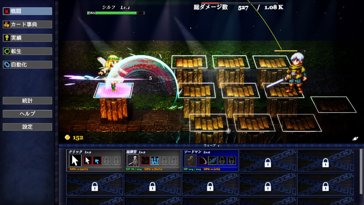 The general gist of this game is that the player will be tasked to place allied character units on a 3x3 grid, and they will then automatically take part in battles while unleashing their skills; whether it's offensive or supportive. You can also earn cards that add buffs during a playthrough. And after a session has ended, you can unlock permanent buffs in the Rebirth system menu.