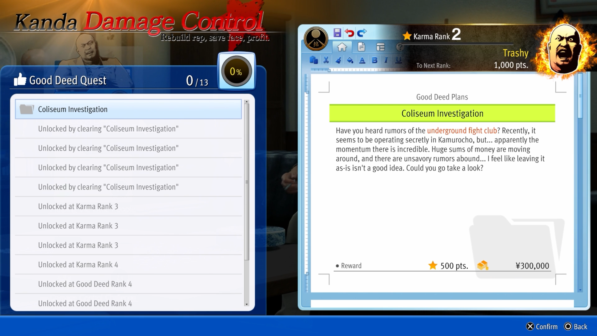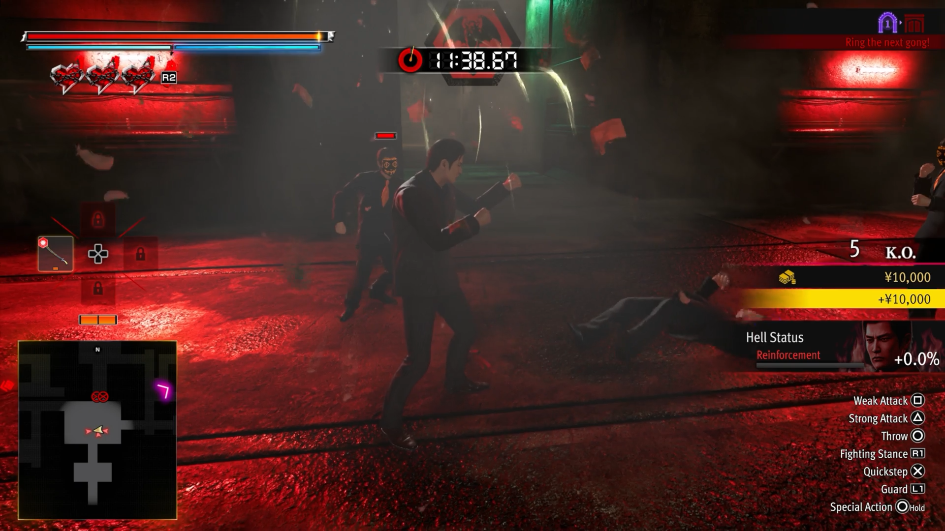 The biggest new addition here is doing Kanda Damage Control. These are missions given to you by Kanda that, upon completion, will help increase the gang’s reputation. In a funny twist, Mine suggests to Kanda that they perform good deeds for the community to build up their trust in the gangster. In my preview, the Damage Control mission I played involved investigating the underground fight club, which led me to the Hell’s Arena section where I could take on the combat challenges. Story details and other Damage Control missions are still mum, but it’s easy to imagine the types of situations we’ll get into with a Yakuza trying to do right by their community.