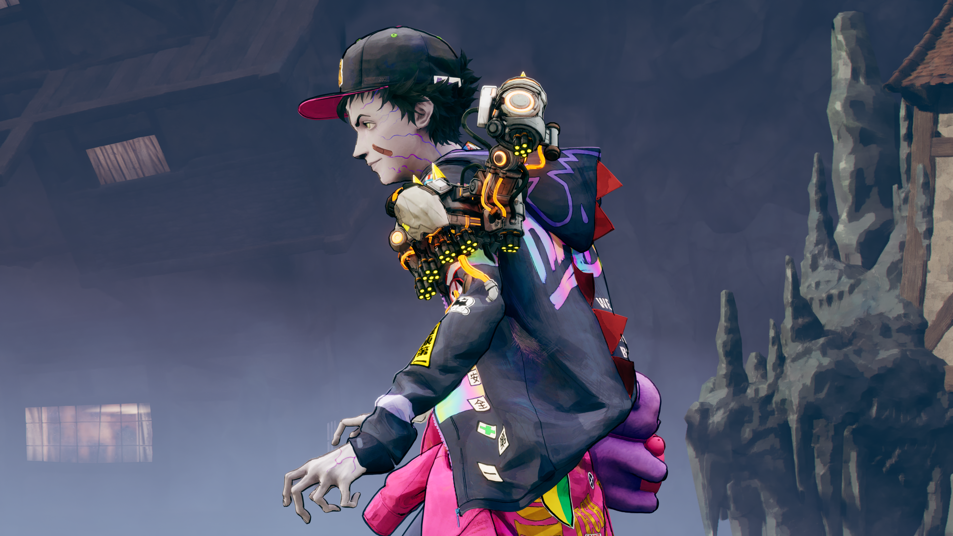 The moment-to-moment gameplay in Stupid Never Dies consists of two core pillars: Style Eat and Body Hack. Besides his normal base zombie form, Davy can eat his foes to turn into one of ten different styles. Players can “store” up to two other forms that Davy acquires from feasting on his run, and can seamlessly switch between those two forms along with his Zombie style. Meanwhile, Body Hack encompasses equippable gear that transforms Davy’s arms, head, and legs when worn. Equipment that changes Davy’s left arm changes his moveset; the Body Hack feature can be utilized on all of Davy’s form changes.