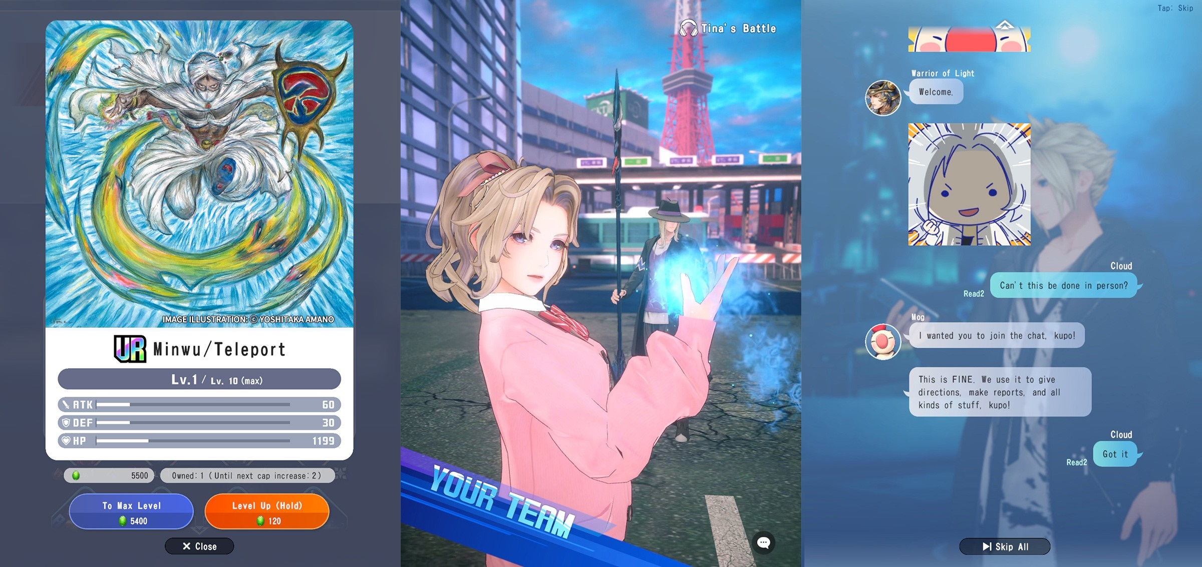 That brings us to Dissidia Duellum Final Fantasy, yet another bizarre step in the franchise that, once again, has me scratching my head at some of its design decisions. After spending nearly six hours with it, I can't deny that the game has its hooks in me in a way, though I can't properly articulate why. The novelty of seeing these iconic FF characters interact, specifically in this modern-day setting, but the combat also has a kind of unique flair to it that I'm enjoying. That being said, I have some real skepticism about the long-term appeal of Duellum, especially in the face of Square Enix's less-than-stellar history with free-to-play mobile games.