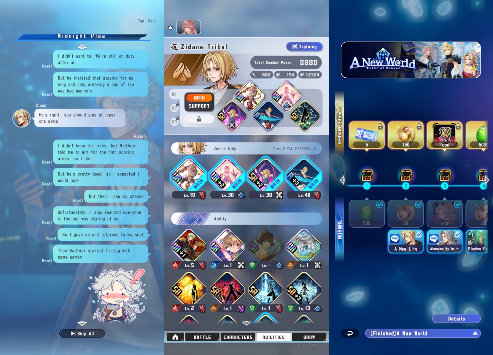 The other vital part to touch on is how the gacha system affects gameplay. The gacha in Dissidia Duellum Final Fantasy is split into drawing characters and then drawing abilities for said characters. I spent a few hours trying to get a handle on the game's story and gacha systems, particularly how, in this instance, those two are blended together. For full disclosure, the preview account I had access to was loaded up with all of the game's currencies, but I deliberately avoided that initially to see how much I could earn by playing, and then using some of said currencies to play around with the character-specific abilities.