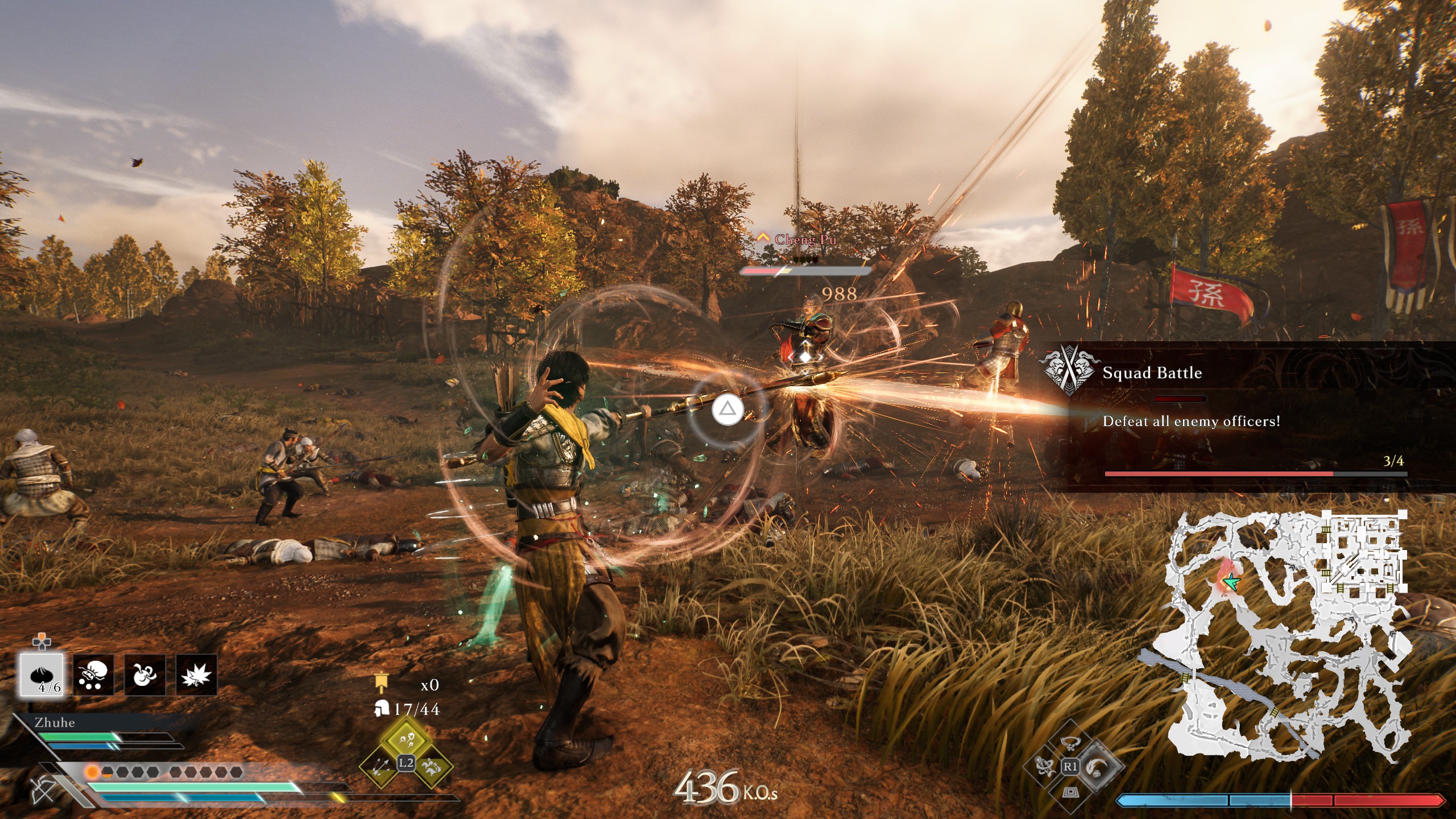 Zhang Jiao’s Yellow Turban story arc kicks off the Visions of Four Heroes DLC. It must be completed first before any of the others; once it’s done though, people can freely select between Dong Zhuo, Yuan Shao, or Lu Bu’s DLC story campaigns. The first stage begins at the open area where the silent protagonist Ziluan fights Zhang Jiao for the final time in the base game. Of course, Ziluan mysteriously appears to aid Zhang Jiao this time before he faced his demise.
